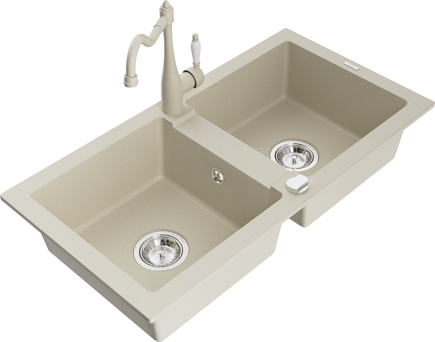Mexen Mario gránit 2-medencés mosogató Carla konyhai csapteleppel, bézs - 6504-69-670700-69