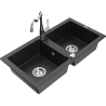 Mexen Mario gránit 2-medencés mosogató Carla konyhai csapteleppel, szürke - 6504-71-670700-71