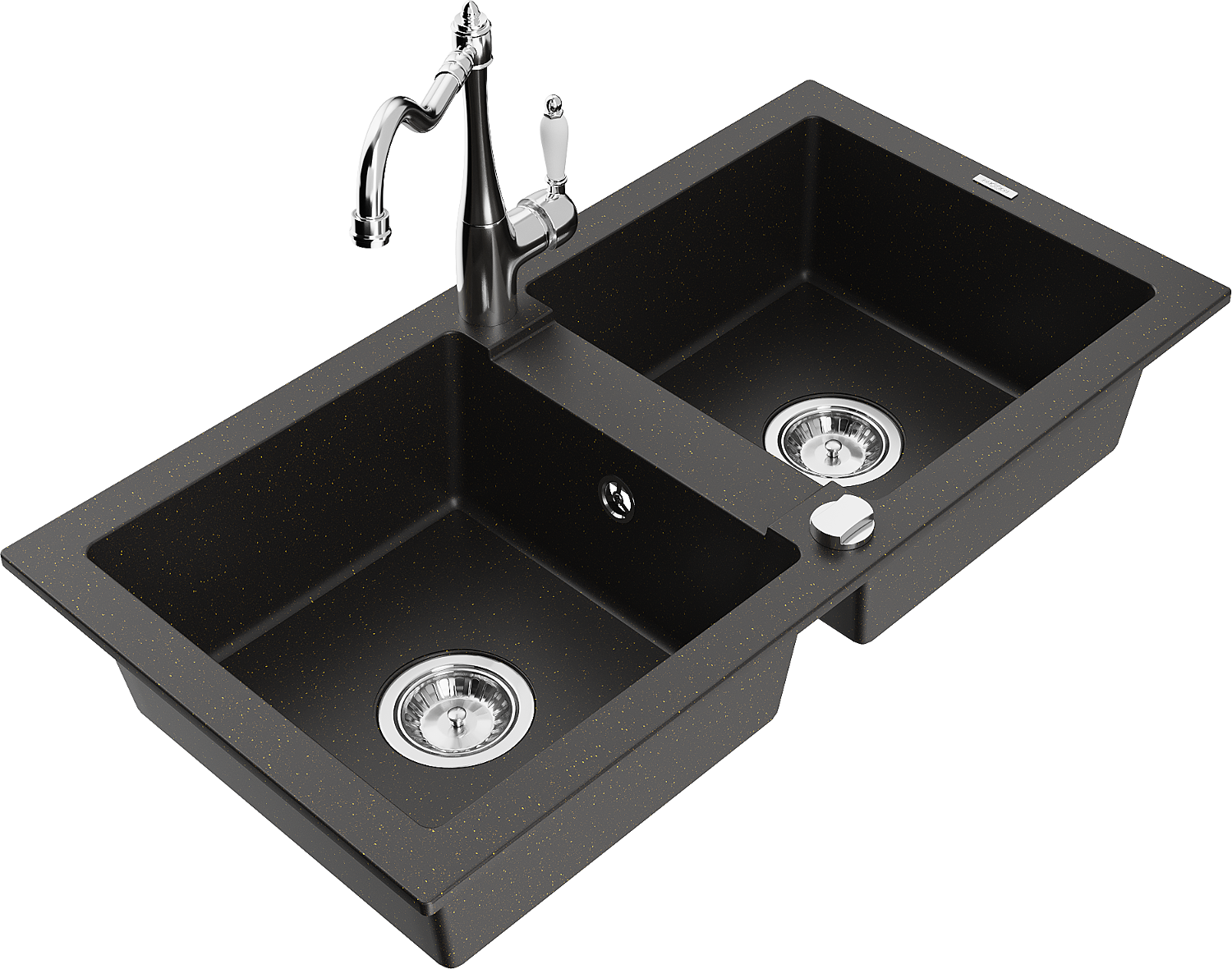 Mexen Mario 2-rekeszes gránit mosogató Carla konyhai csappal, fekete/arany metál - 6504-75-670700-00