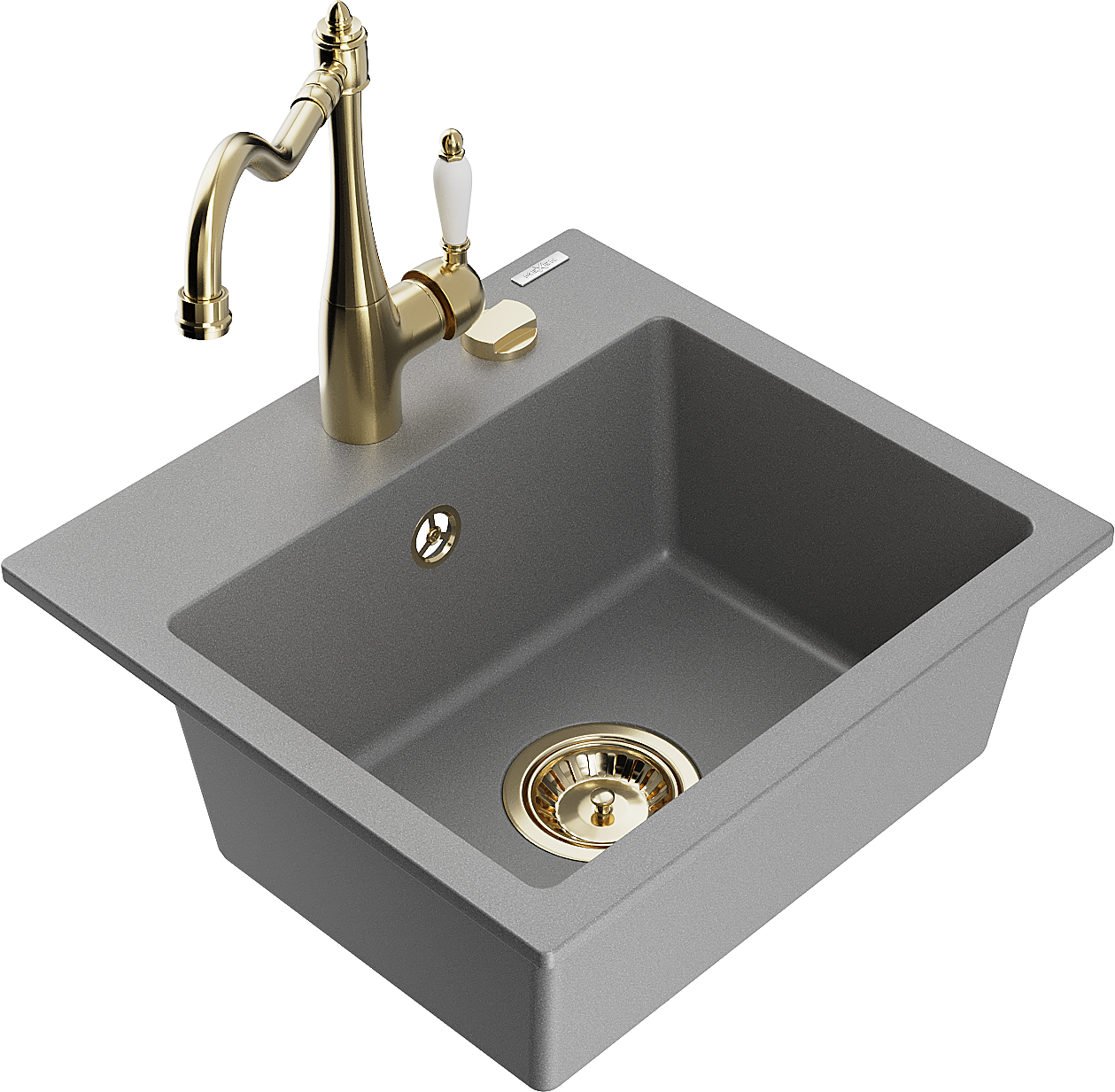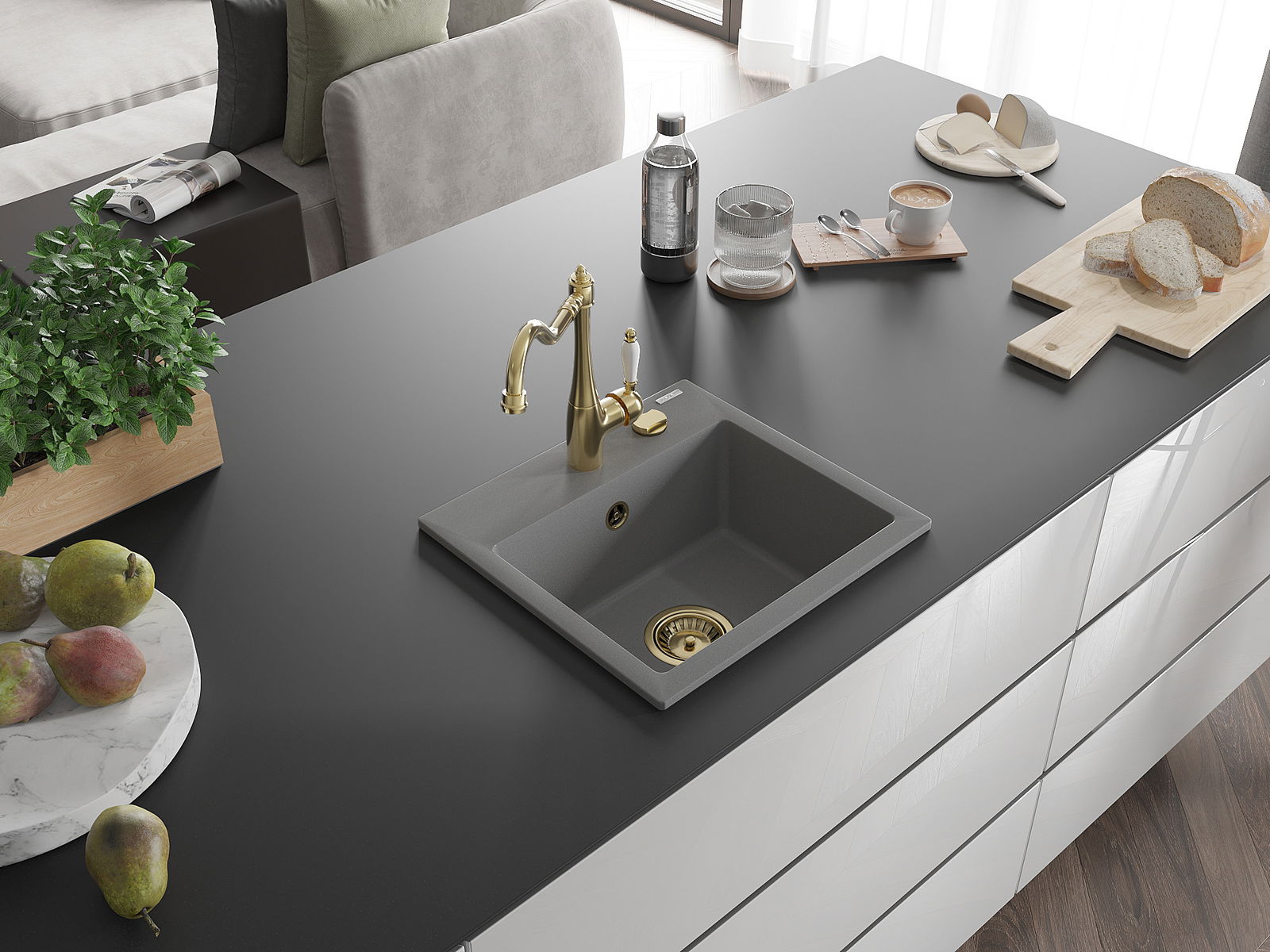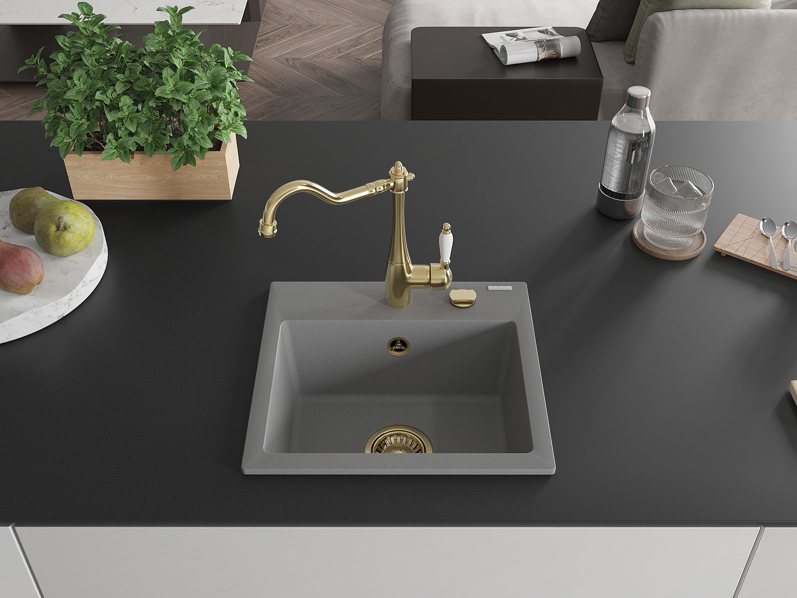 Mexen Milo gránit mosogató 1-medencés Carla konyhai csapteleppel, szürke - 6505-71-670700-50