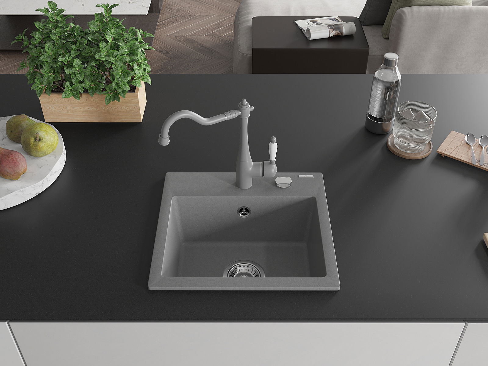 A mosogató kiváló minőségű gránitból készül. Ez egy elegáns és mindenekelőtt minden konyhához praktikus kiegészítés, stílusától függetlenül. A kiváló minőségű és a gránit tartósság biztosítja a sok éves használatát.
