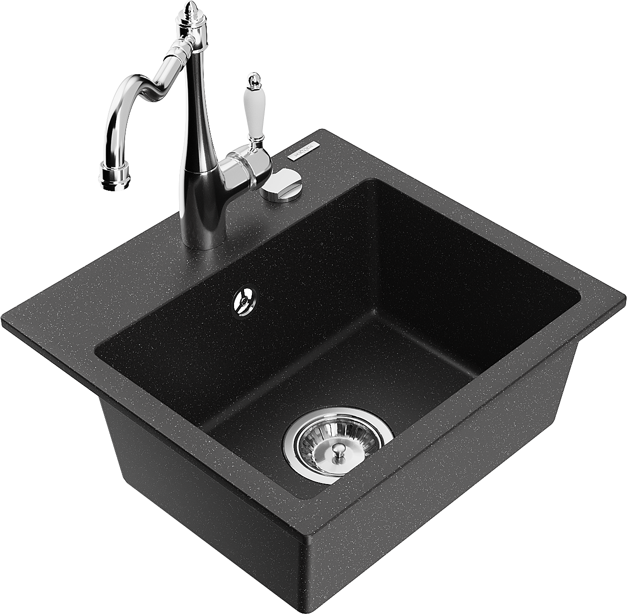 Mexen Milo egykamrás gránit mosogató Carla konyhai csapteleppel, fekete/ezüst metál - 6505-73-670700-00