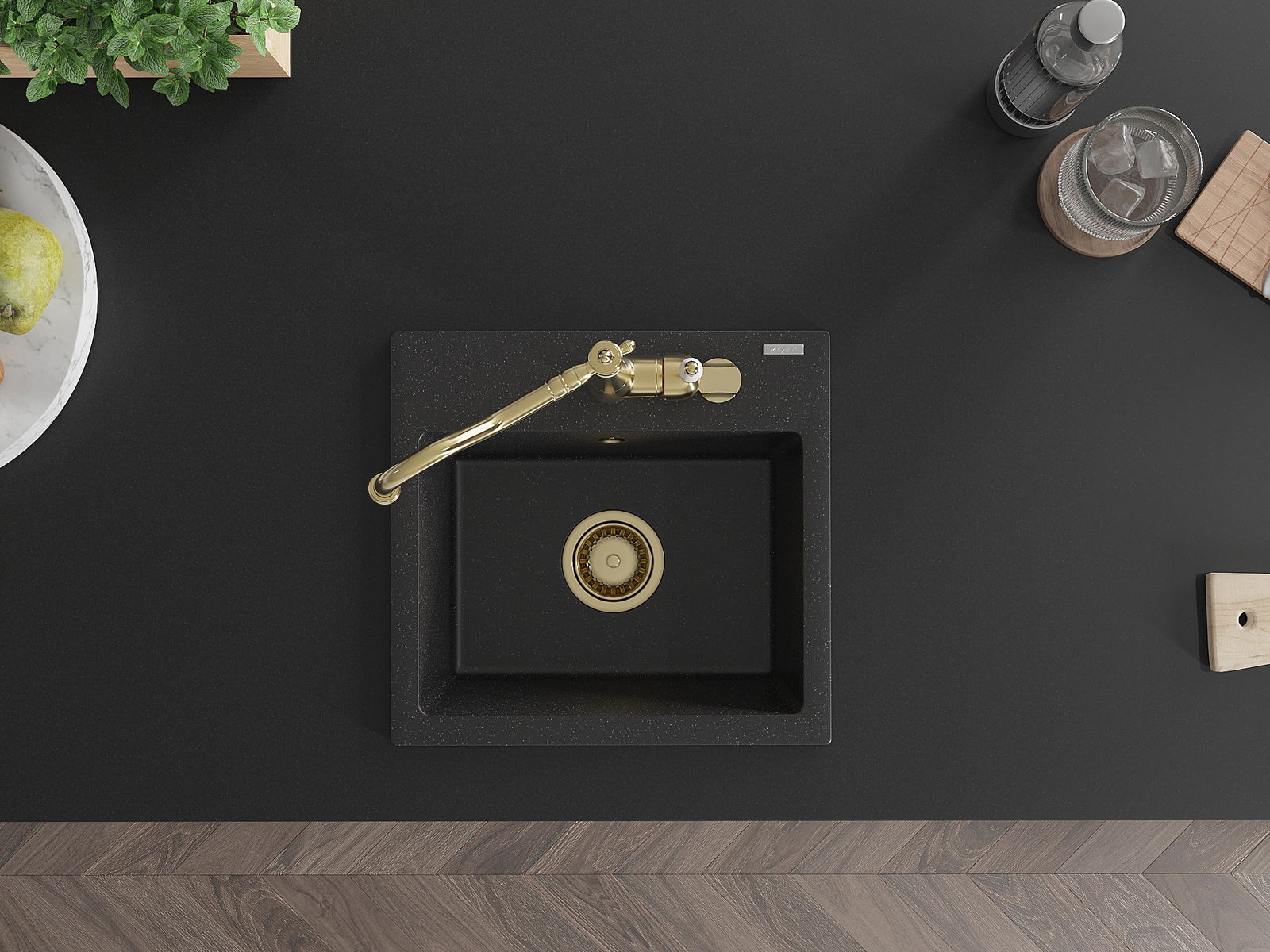Mexen Milo 1 rekeszes gránit mosogató Carla konyhai csapteleppel, fekete/ezüst metál - 6505-73-670700-50