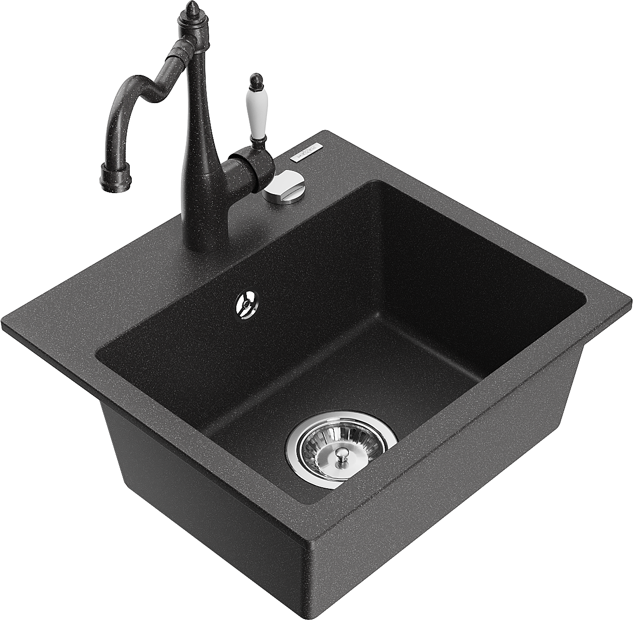 Mexen Milo gránit mosogató egykamrás Carla konyhai csappal, fekete pöttyös - 6505-76-670700-76