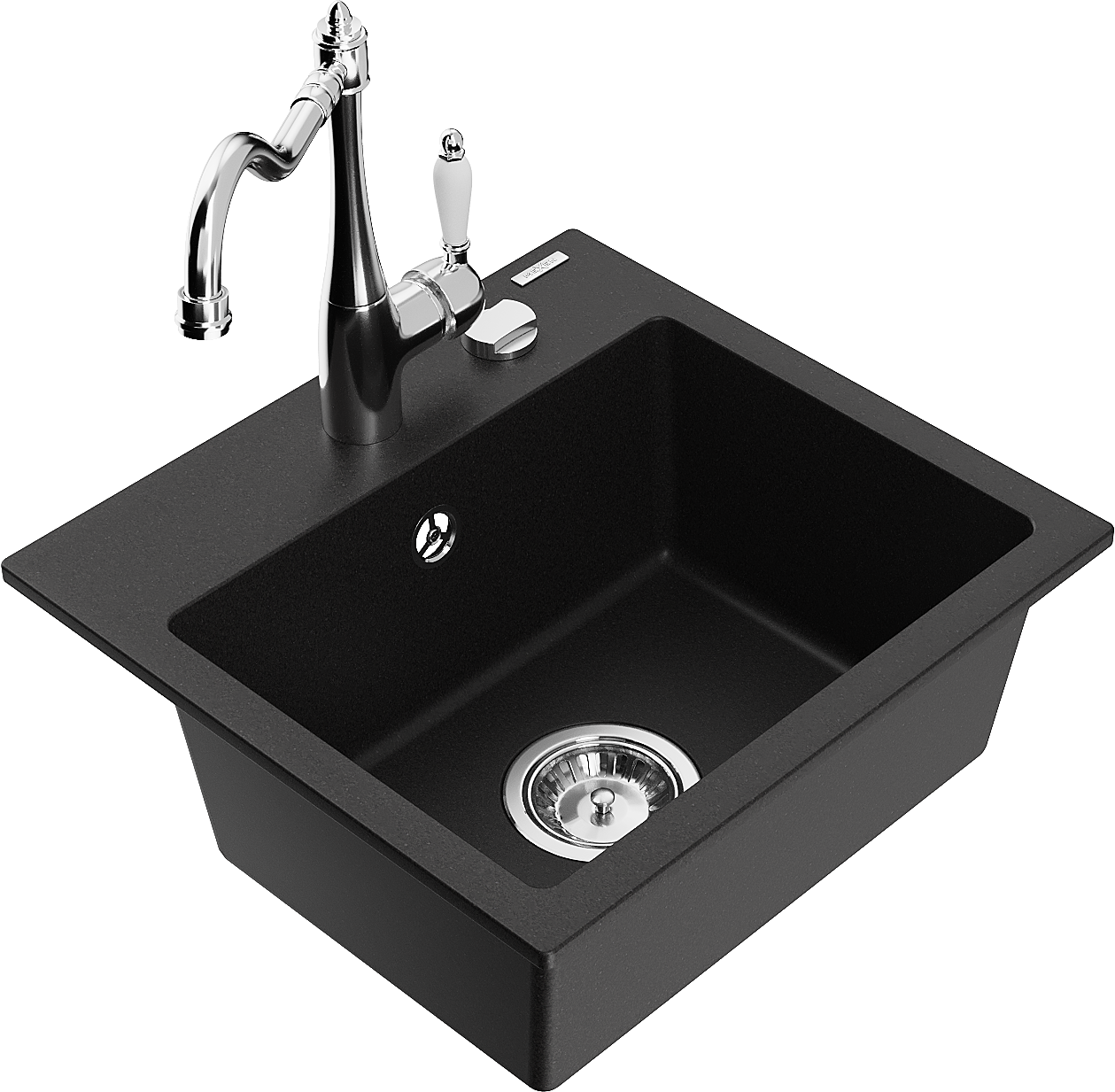 Mexen Milo 1-medencés gránit mosogató Carla konyhai csappal, fekete - 6505-77-670700-00