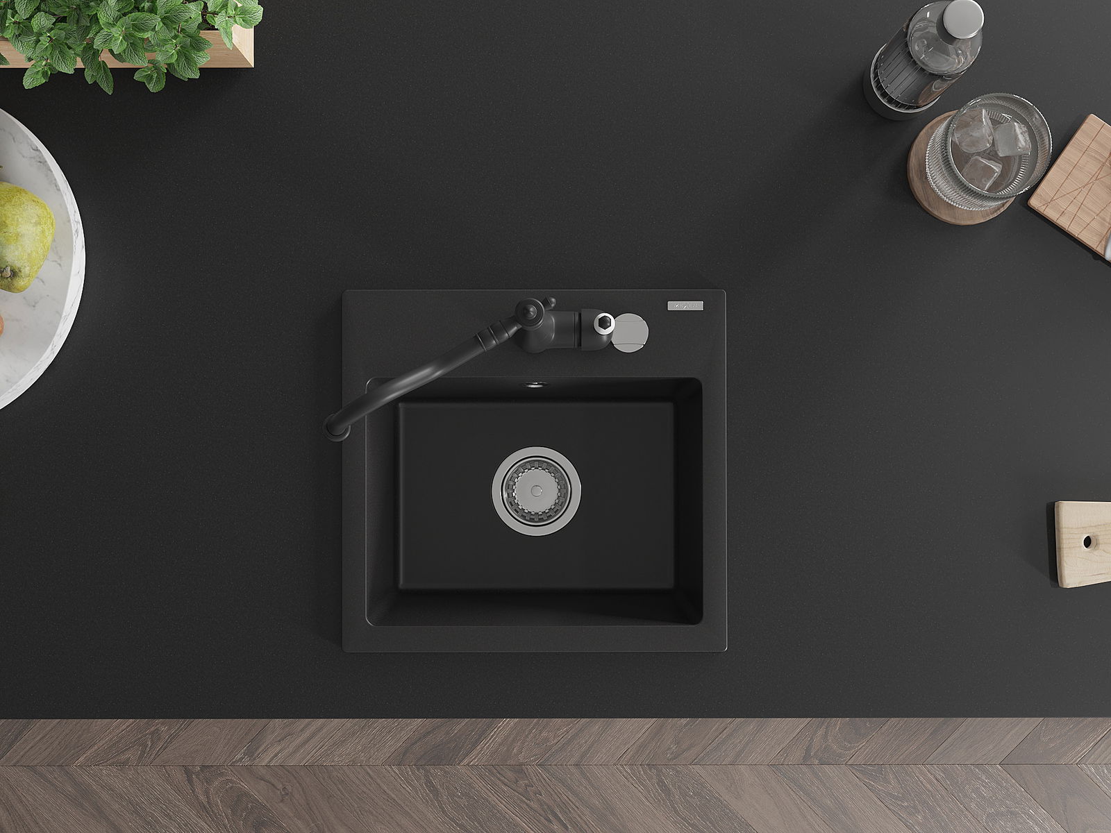 Mexen Milo 1 rekeszes gránit mosogató Carla konyhai csapteleppel, fekete - 6505-77-670700-70