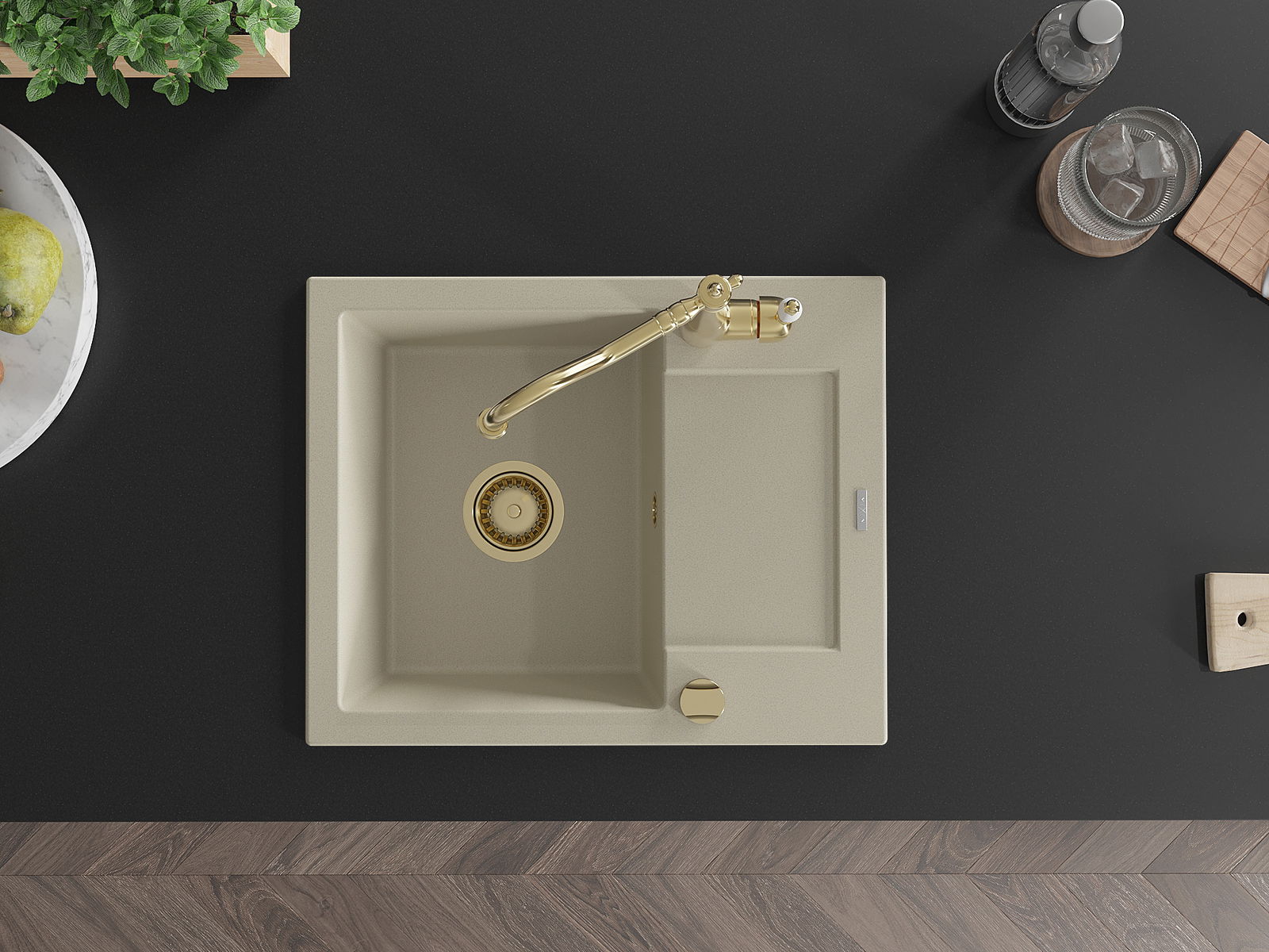 A mosogató felülete ellenáll a foltoknak és a elszíneződésnek, amelynek köszönhetően könnyű megtisztítani és hosszú ideig megtartja színét. Esztétikai és gyakorlatilag kiegészítve minden konyhát.