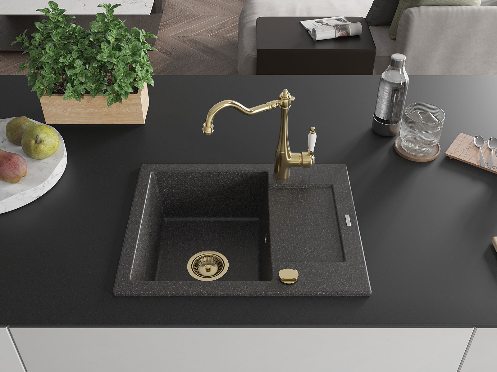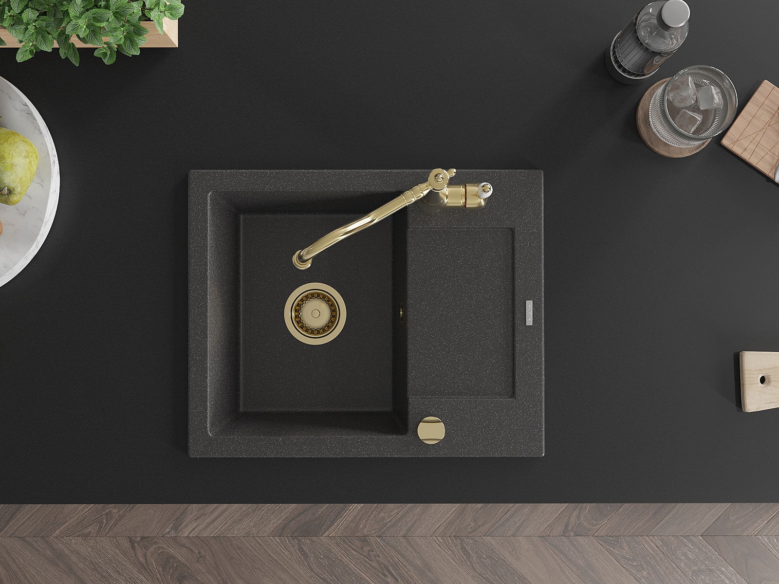A mosogató kiváló minőségű gránitból készül. Ez egy elegáns és mindenekelőtt minden konyhához praktikus kiegészítés, stílusától függetlenül. A kiváló minőségű és a gránit tartósság biztosítja a sok éves használatát.