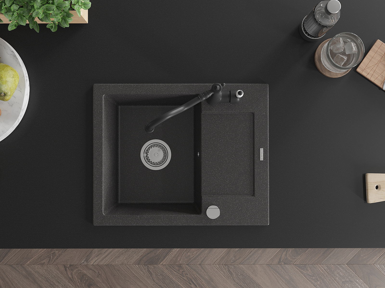 A mosogató magas minőségű gránitból készült. Elegáns, de mindenekelőtt praktikus kiegészítője minden konyhának, függetlenül annak stílusától. A gránit magas minősége és tartóssága hosszú távú használatot biztosít.