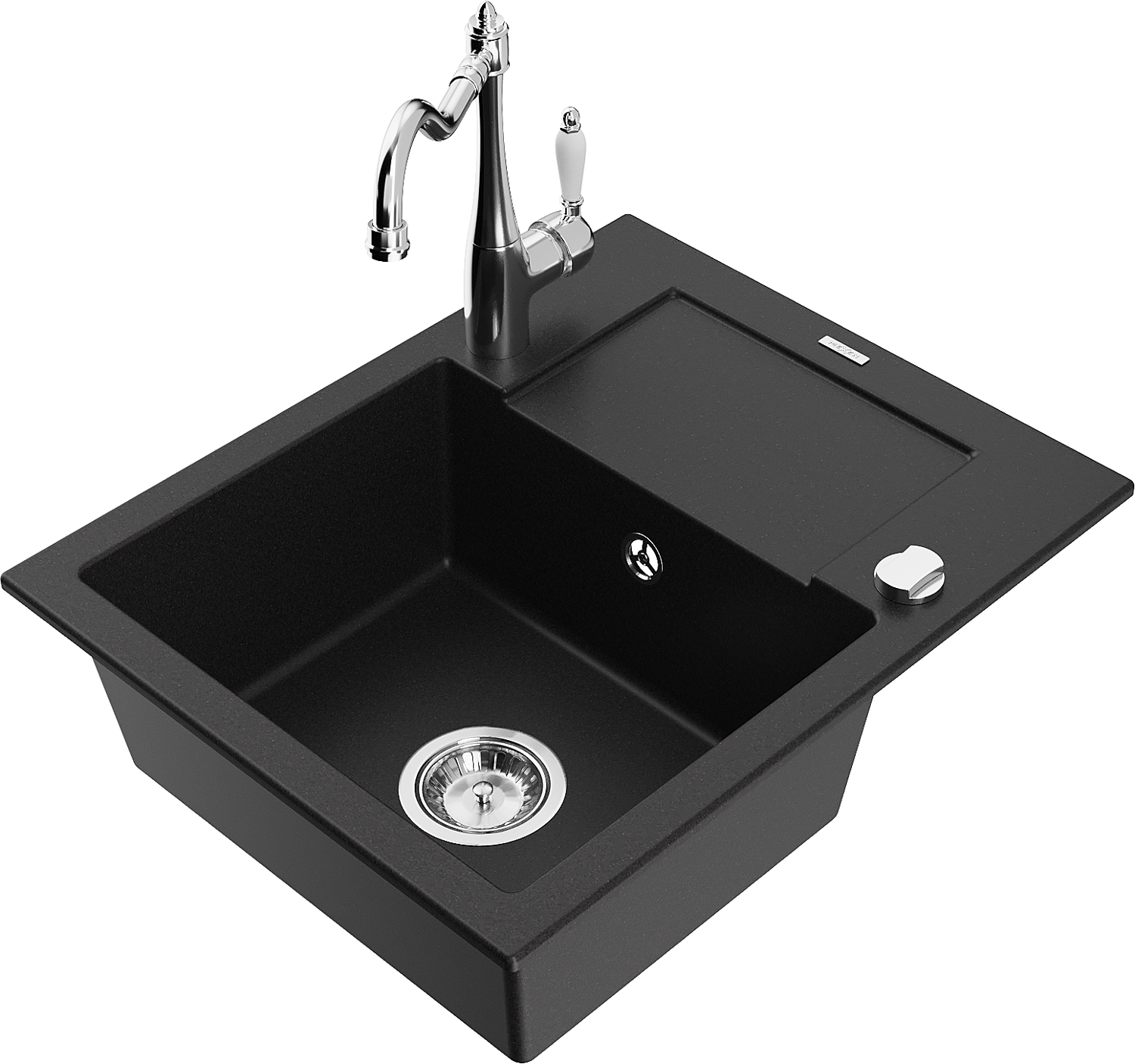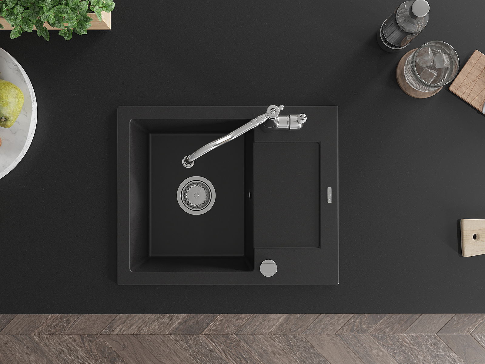 Mexen Enzo 1-medencés gránit mosogatótálca lefolyóval és Carla konyhai csapteleppel, fekete - 6506-77-670700-00