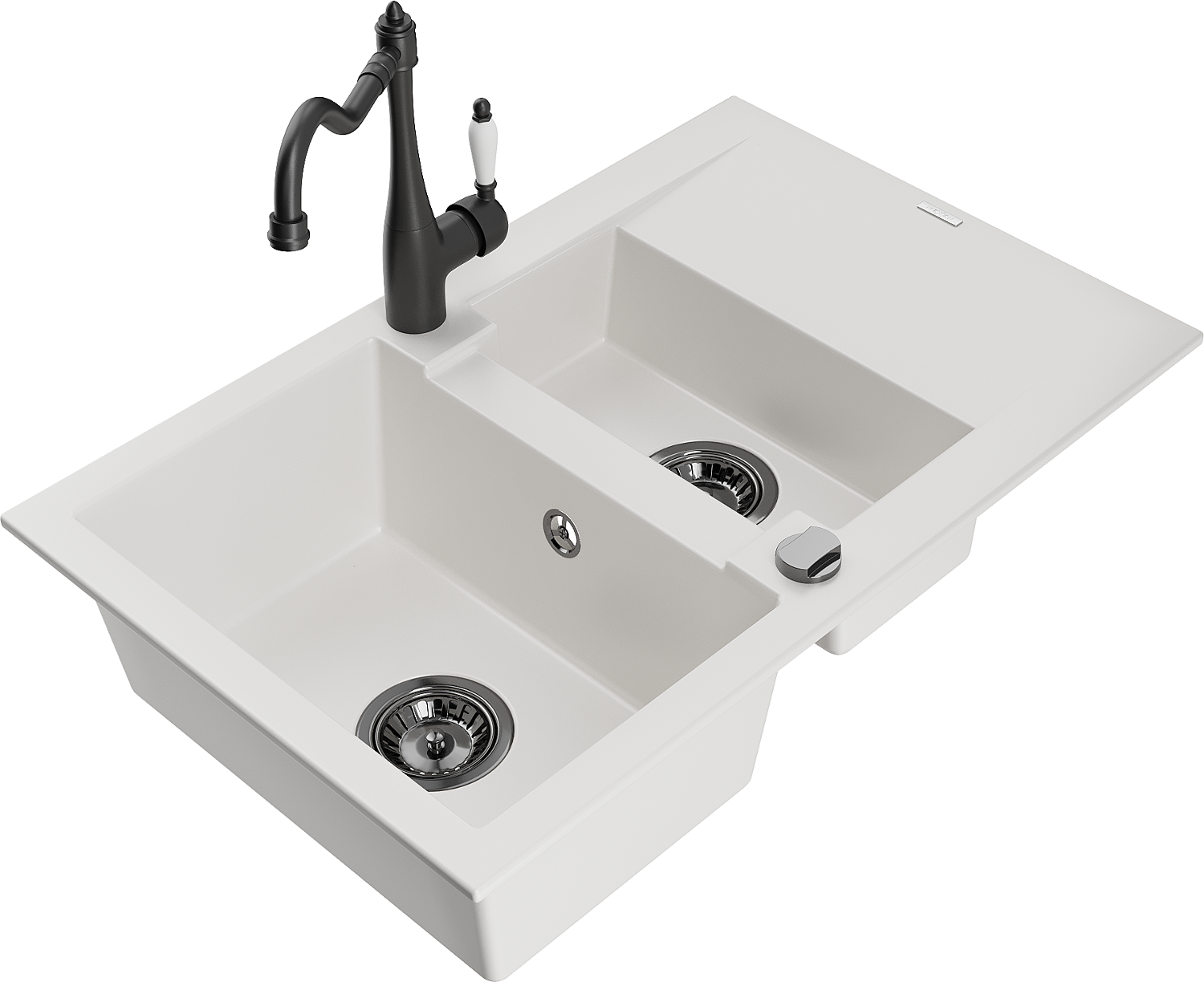 Mexen Gaspar gránit mosogató 1,5 rekeszes csepegtetővel és Carla konyhai csapteleppel, fehér - 6507-20-670700-70