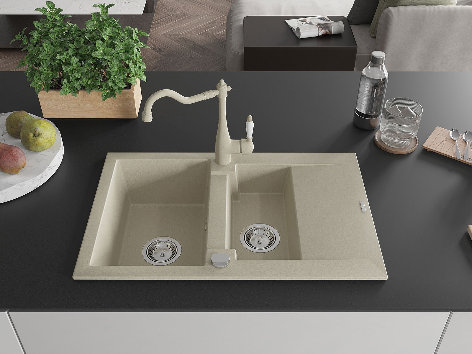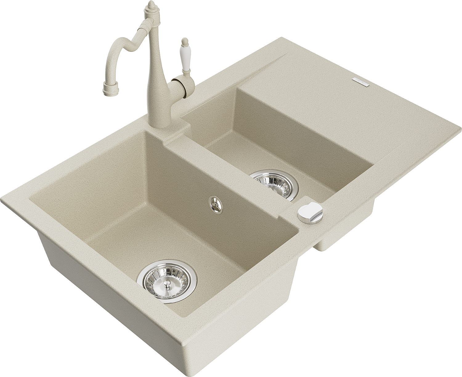 Mexen Gaspar gránit mosogató 1,5 rekesszel, csepegtetővel és Carla konyhai csapteleppel, bézs - 6507-69-670700-69