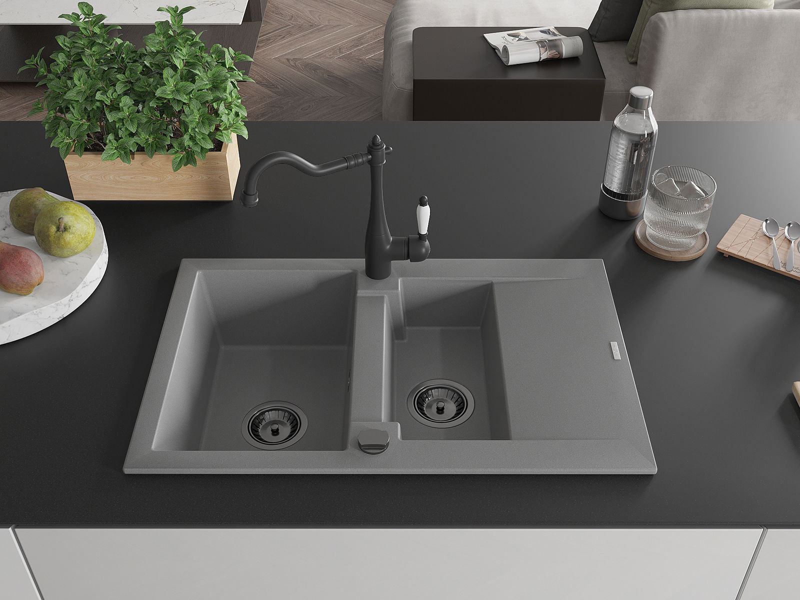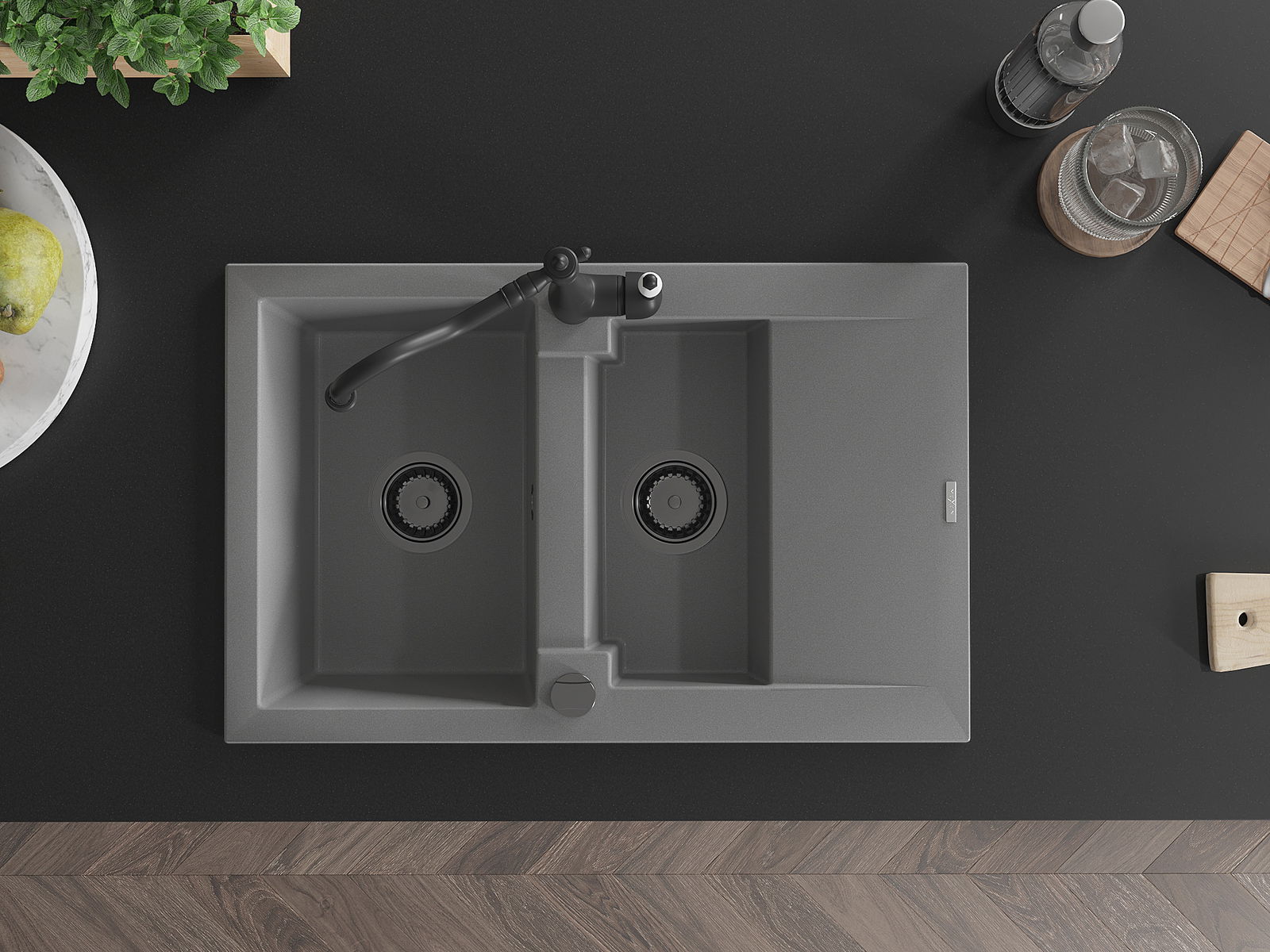 A mosogató kiváló minőségű gránitból készül. Ez egy elegáns és mindenekelőtt minden konyhához praktikus kiegészítés, stílusától függetlenül. A kiváló minőségű és a gránit tartósság biztosítja a sok éves használatát.