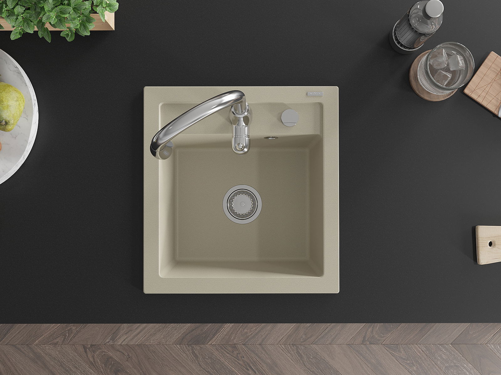 A mosogató kiváló minőségű gránitból készül. Ez egy elegáns és mindenekelőtt minden konyhához praktikus kiegészítés, stílusától függetlenül. A kiváló minőségű és a gránit tartósság biztosítja a sok éves használatát.