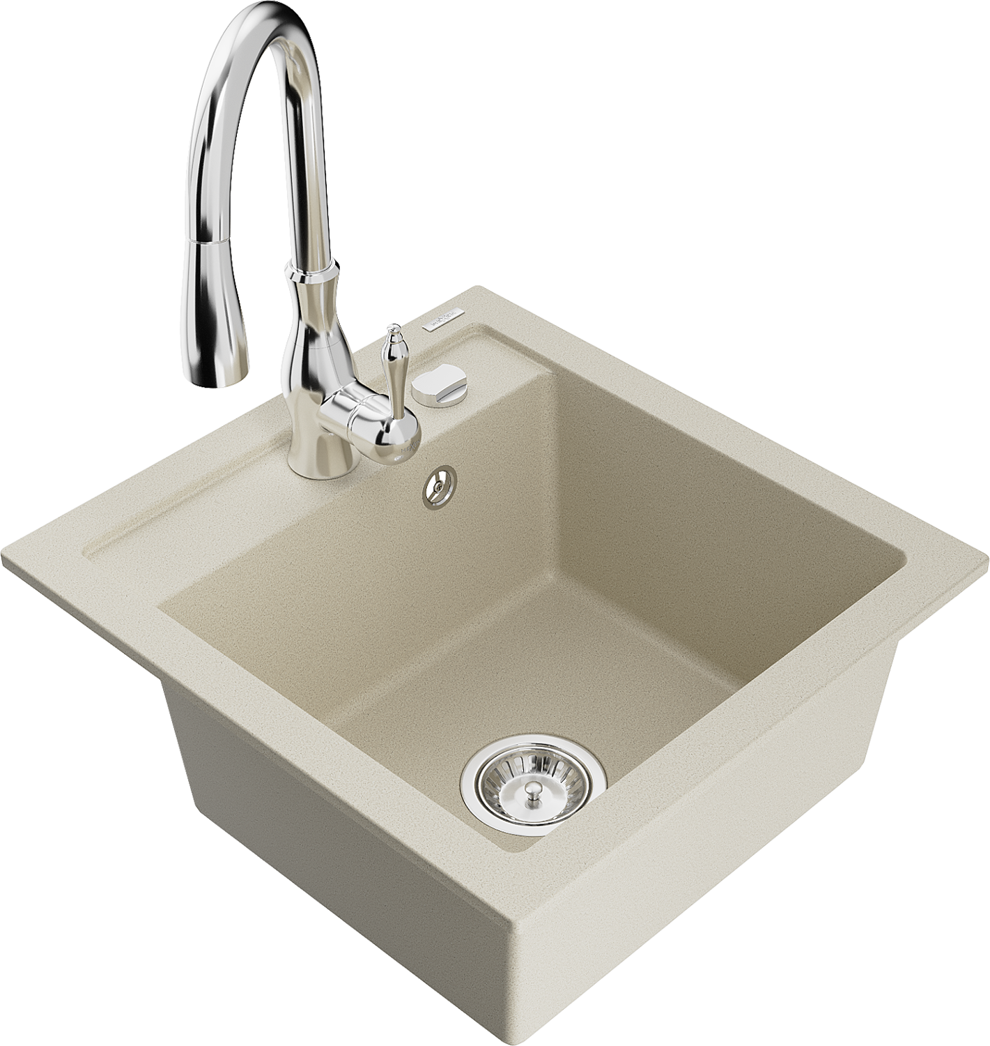Mexen Vito gránit mosogató 1-medencés konyhai csappal Savita, bézs - 6503-69-672601-00