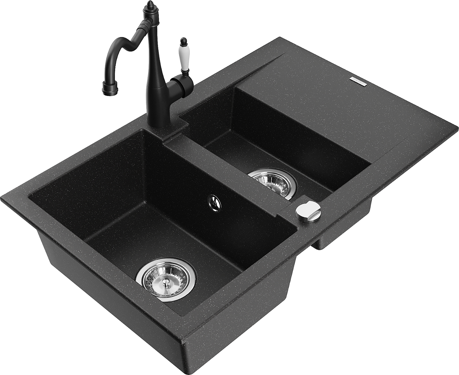 Mexen Gaspar 1,5-medencés gránit mosogató csepegtetővel és Carla konyhai csapteleppel fekete/ezüst metál - 6507-73-670700-70
