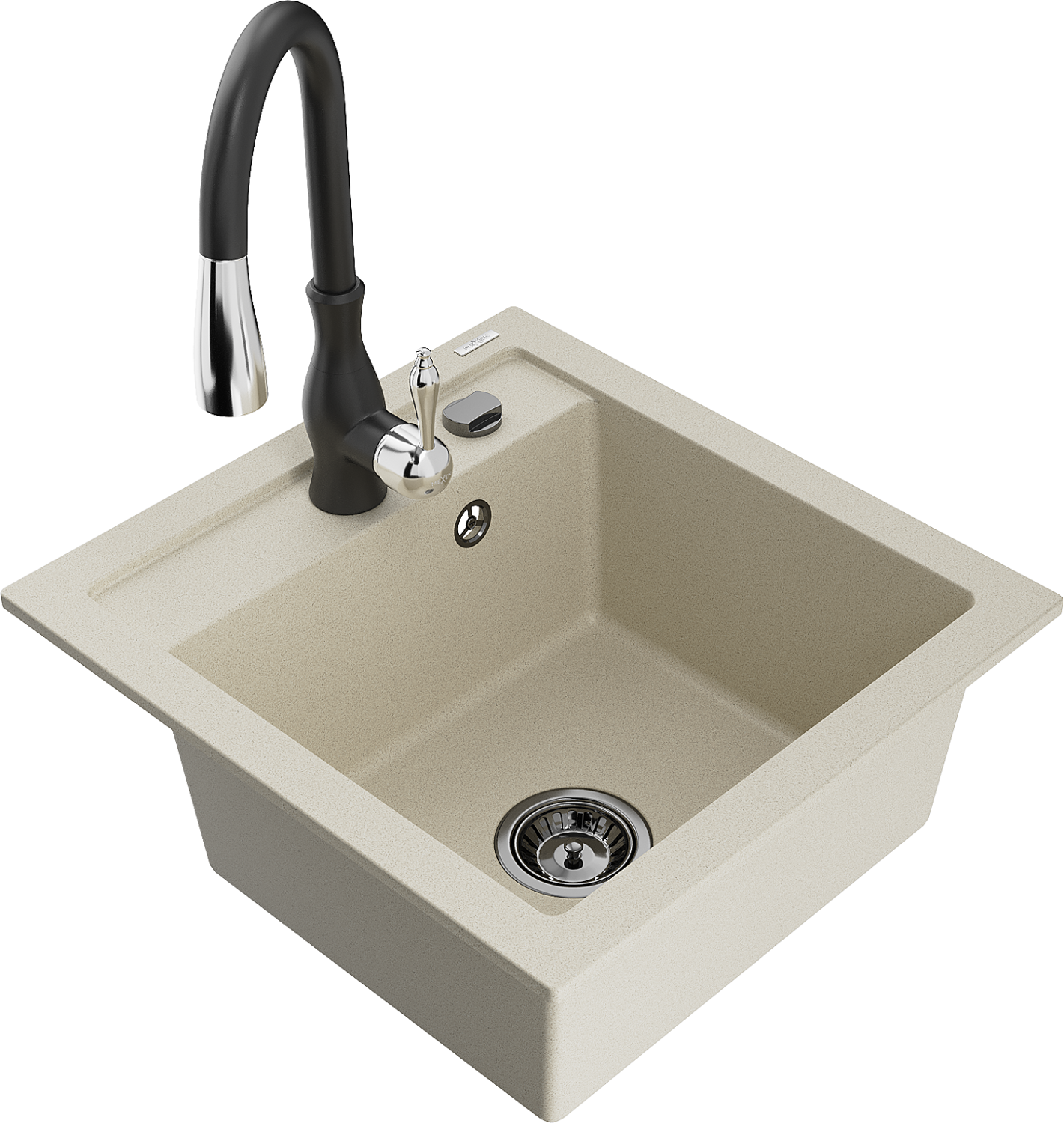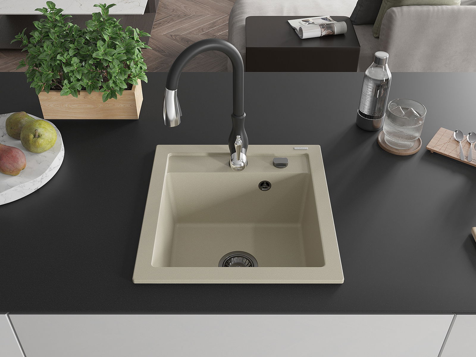 A mosogató kiváló minőségű gránitból készül. Ez egy elegáns és mindenekelőtt minden konyhához praktikus kiegészítés, stílusától függetlenül. A kiváló minőségű és a gránit tartósság biztosítja a sok éves használatát.