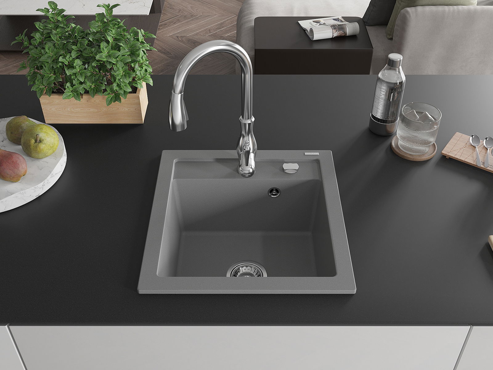 A mosogató kiváló minőségű gránitból készül. Ez egy elegáns és mindenekelőtt minden konyhához praktikus kiegészítés, stílusától függetlenül. A kiváló minőségű és a gránit tartósság biztosítja a sok éves használatát.