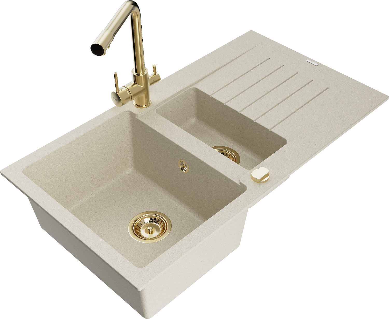 Mexen Matias 1,5 kamrás gránit mosogató csepegtetővel és Duero konyhai csapteleppel, bézs - 6502-69-671600-50