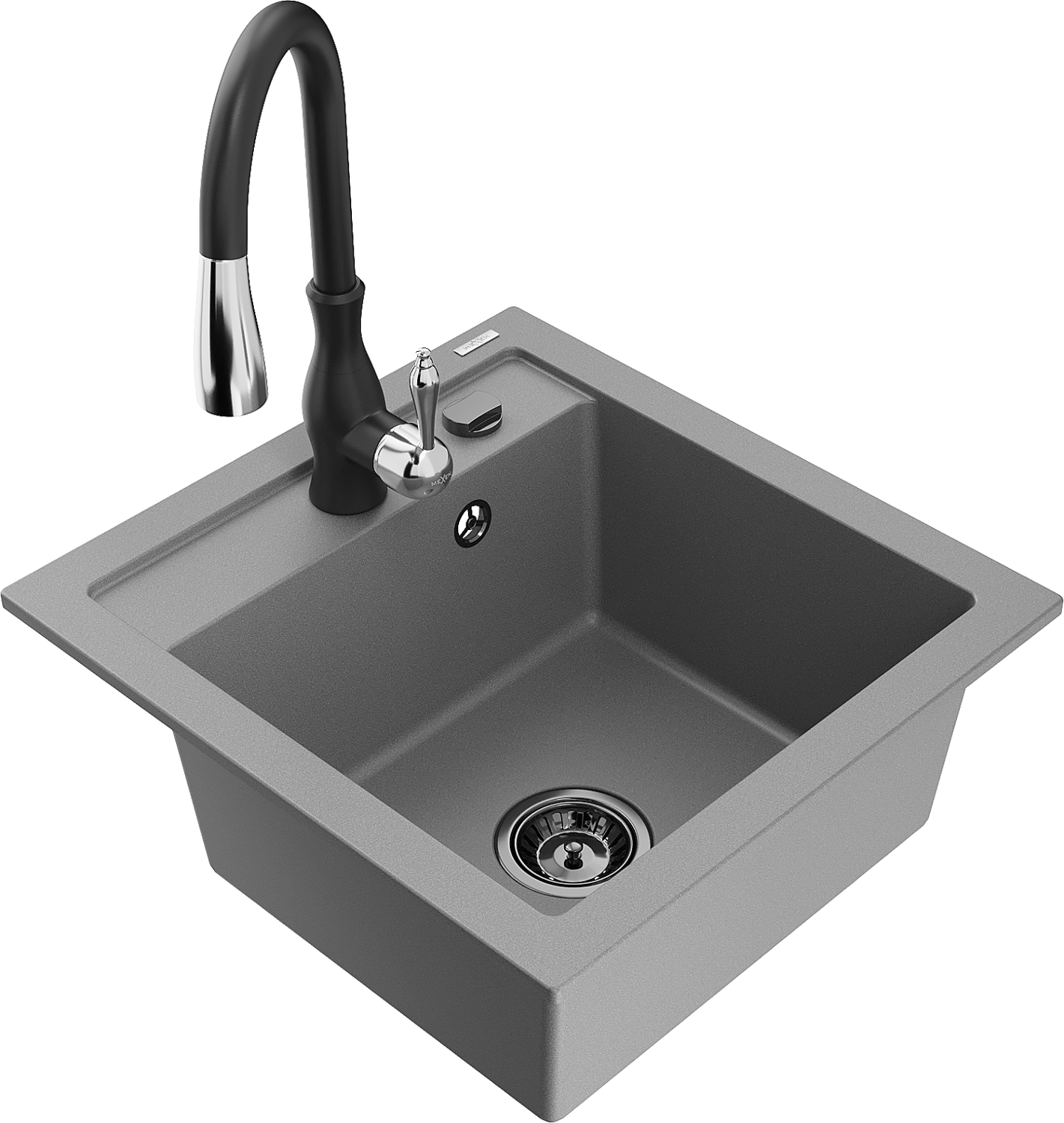 Mexen Vito egymedencés gránit mosogató Savita konyhai csapteleppel, szürke - 6503-71-672601-70-B