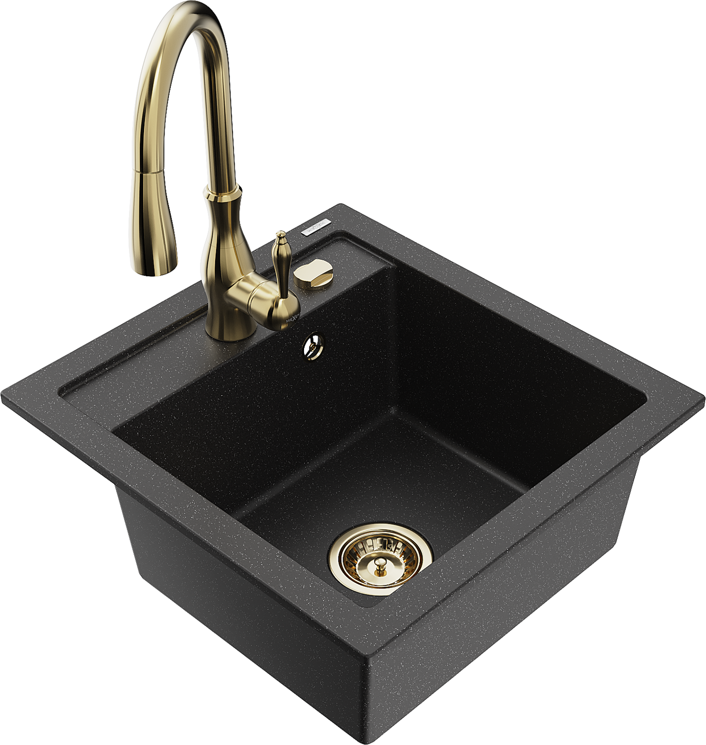 Mexen Vito gránit mosogató 1-medencés konyhai csappal Savita, fekete/ezüst metál - 6503-73-672601-50
