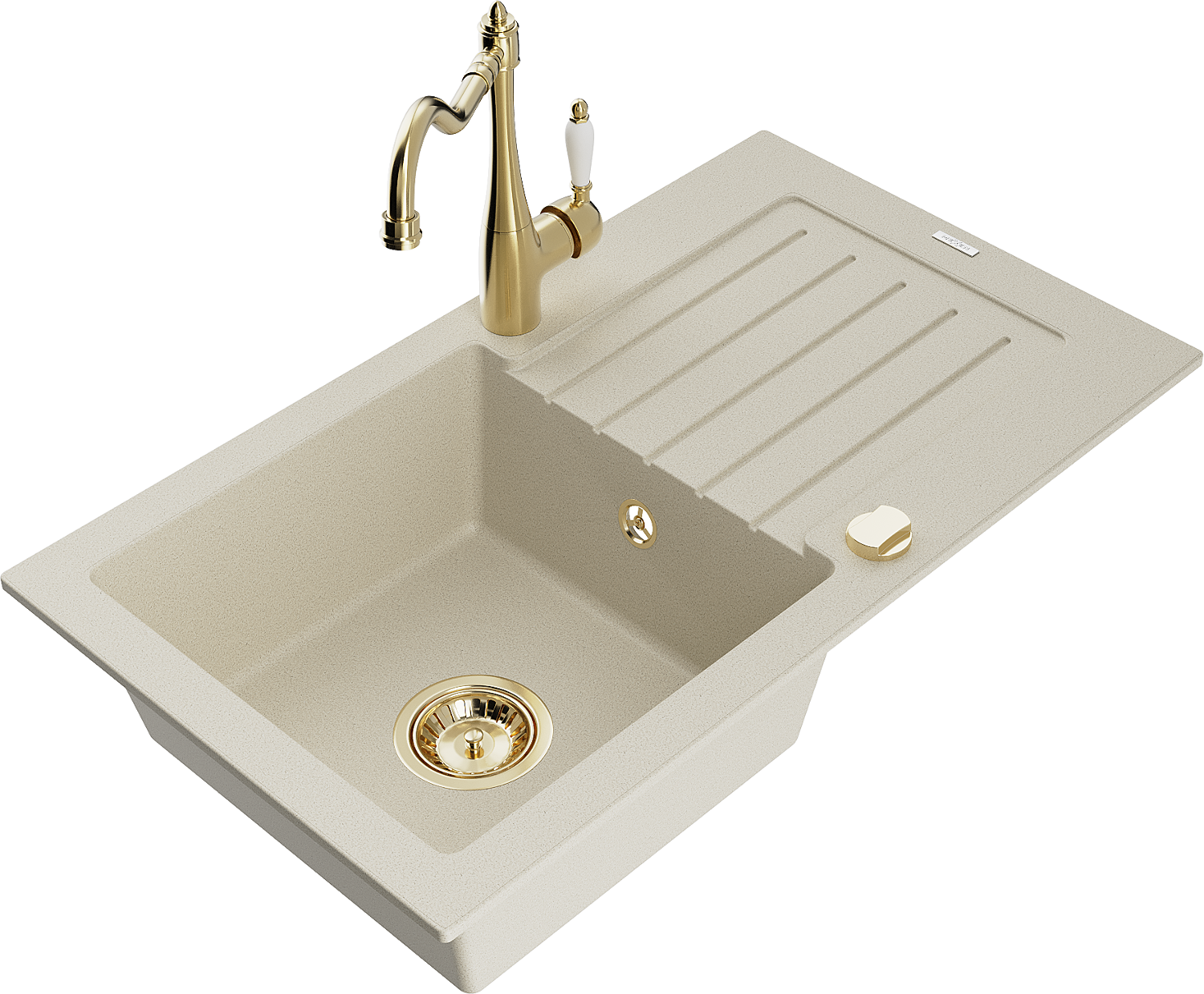 Mexen Pablo gránit mosogató, 1 rekeszes csepegtetővel és Carla konyhai csapteleppel, bézs - 6510-69-670700-50