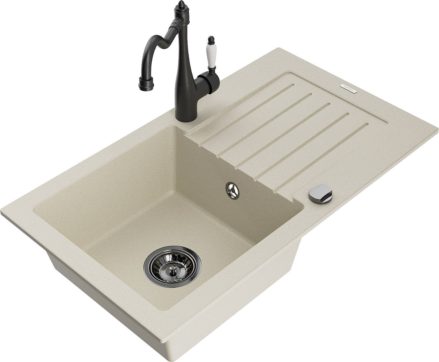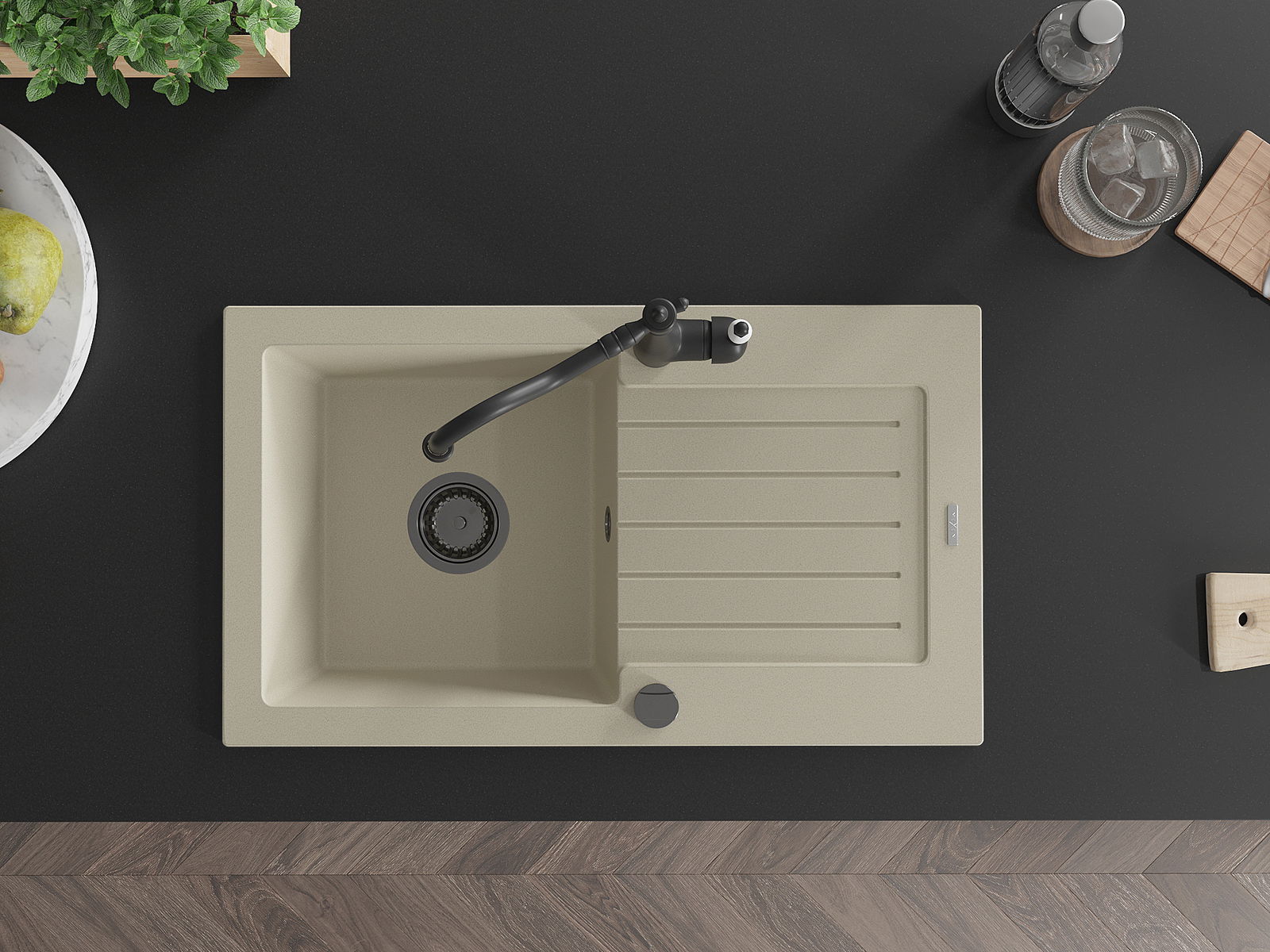 A mosogató magas minőségű gránitból készült. Elegáns, de mindenekelőtt praktikus kiegészítője minden konyhának, függetlenül annak stílusától. A gránit magas minősége és tartóssága hosszú távú használatot biztosít.