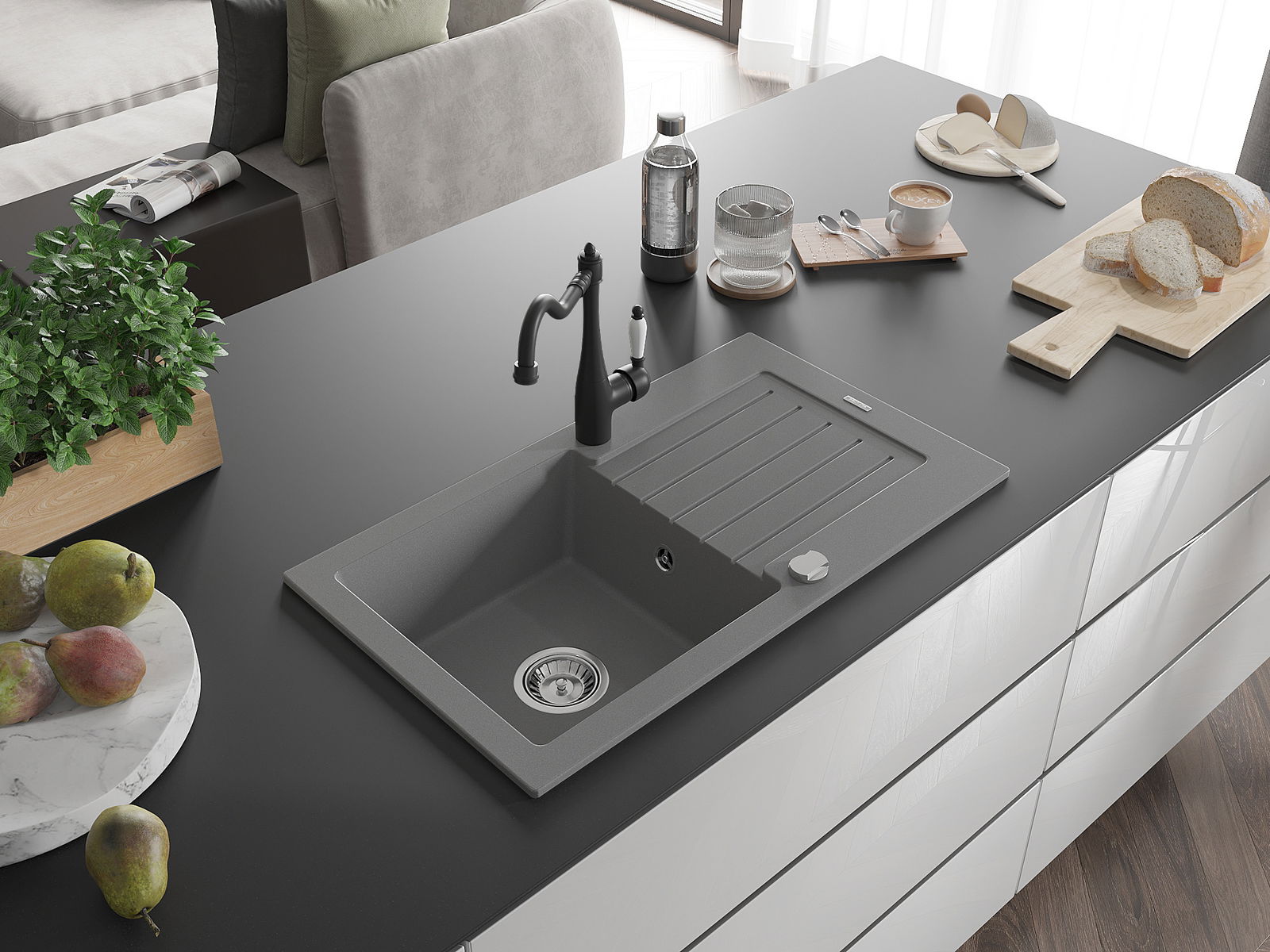 A mosogató kiváló minőségű gránitból készül. Ez egy elegáns és mindenekelőtt minden konyhához praktikus kiegészítés, stílusától függetlenül. A kiváló minőségű és a gránit tartósság biztosítja a sok éves használatát.