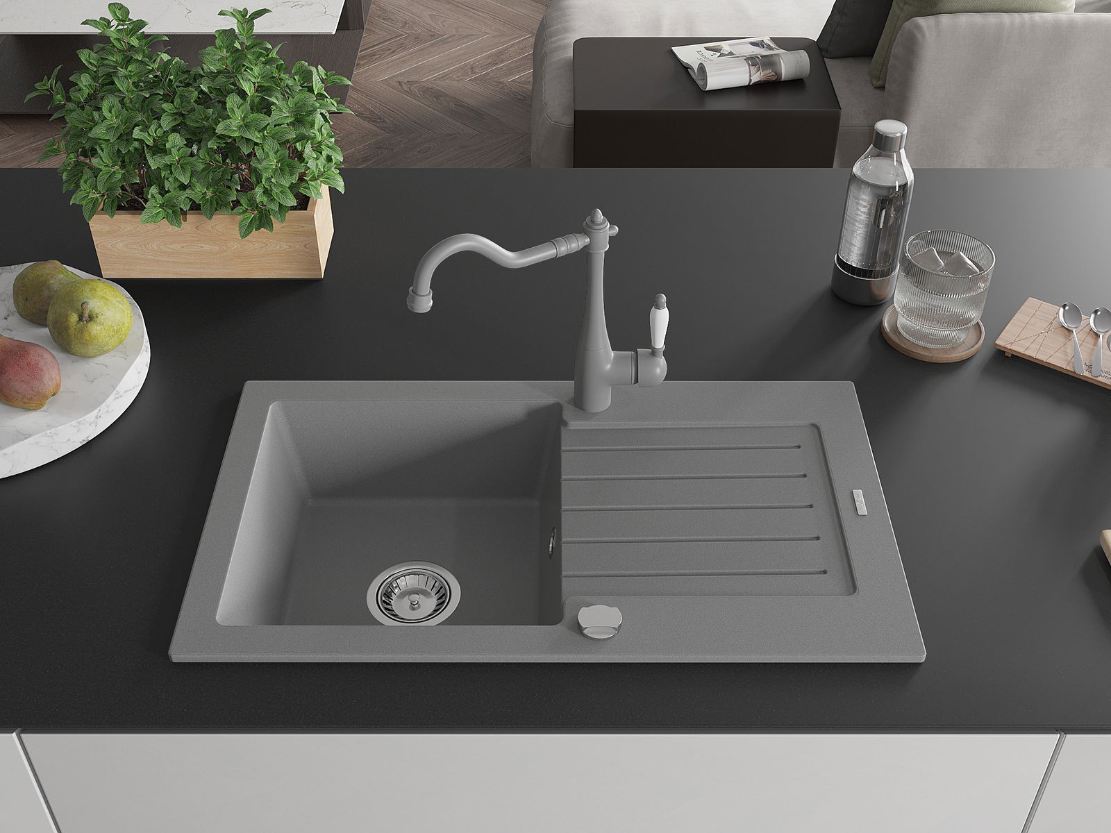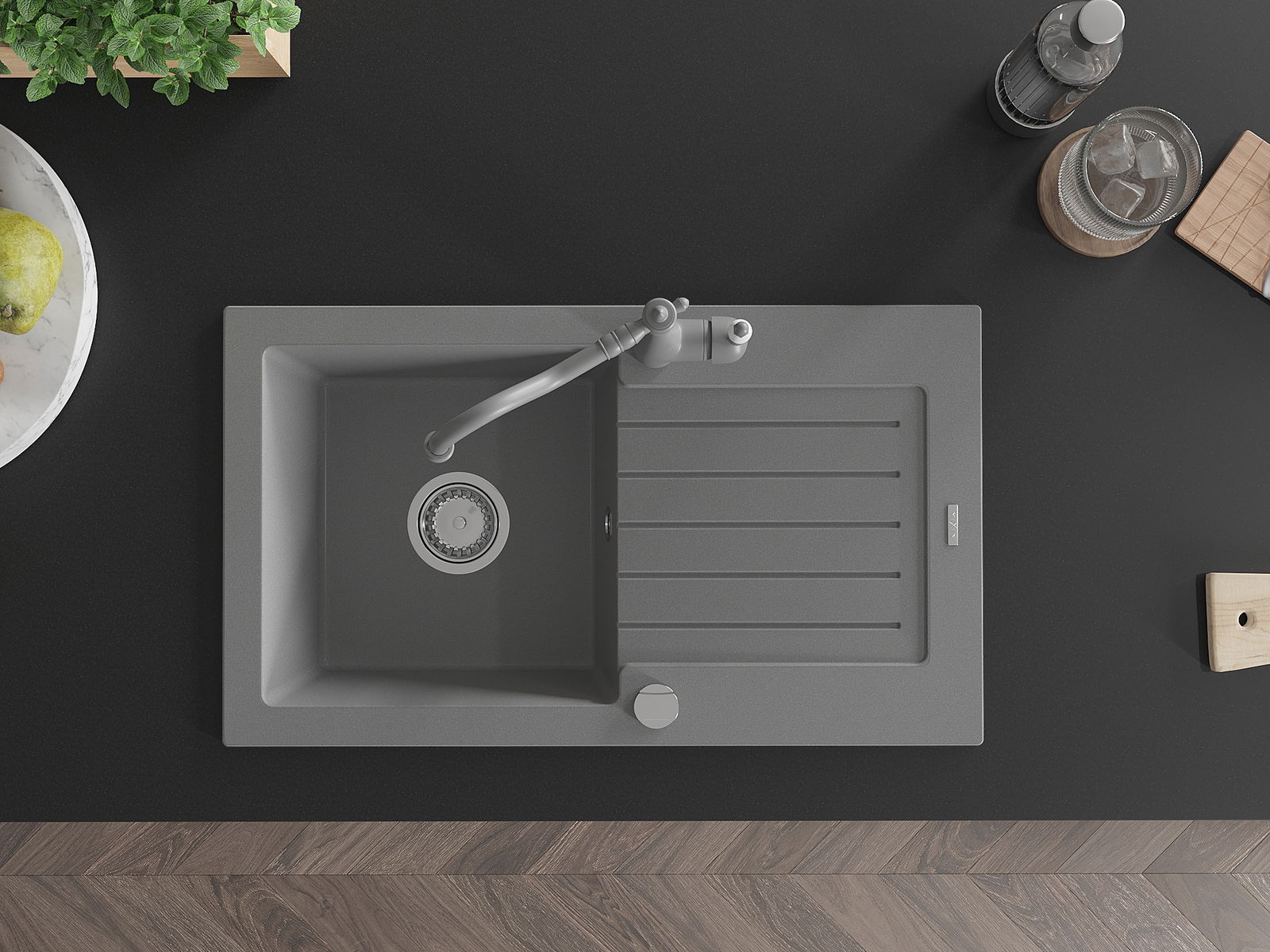 Mexen Pablo egymedencés gránit mosogató csepegtetővel és Carla konyhai csapteleppel, szürke - 6510-71-670700-71