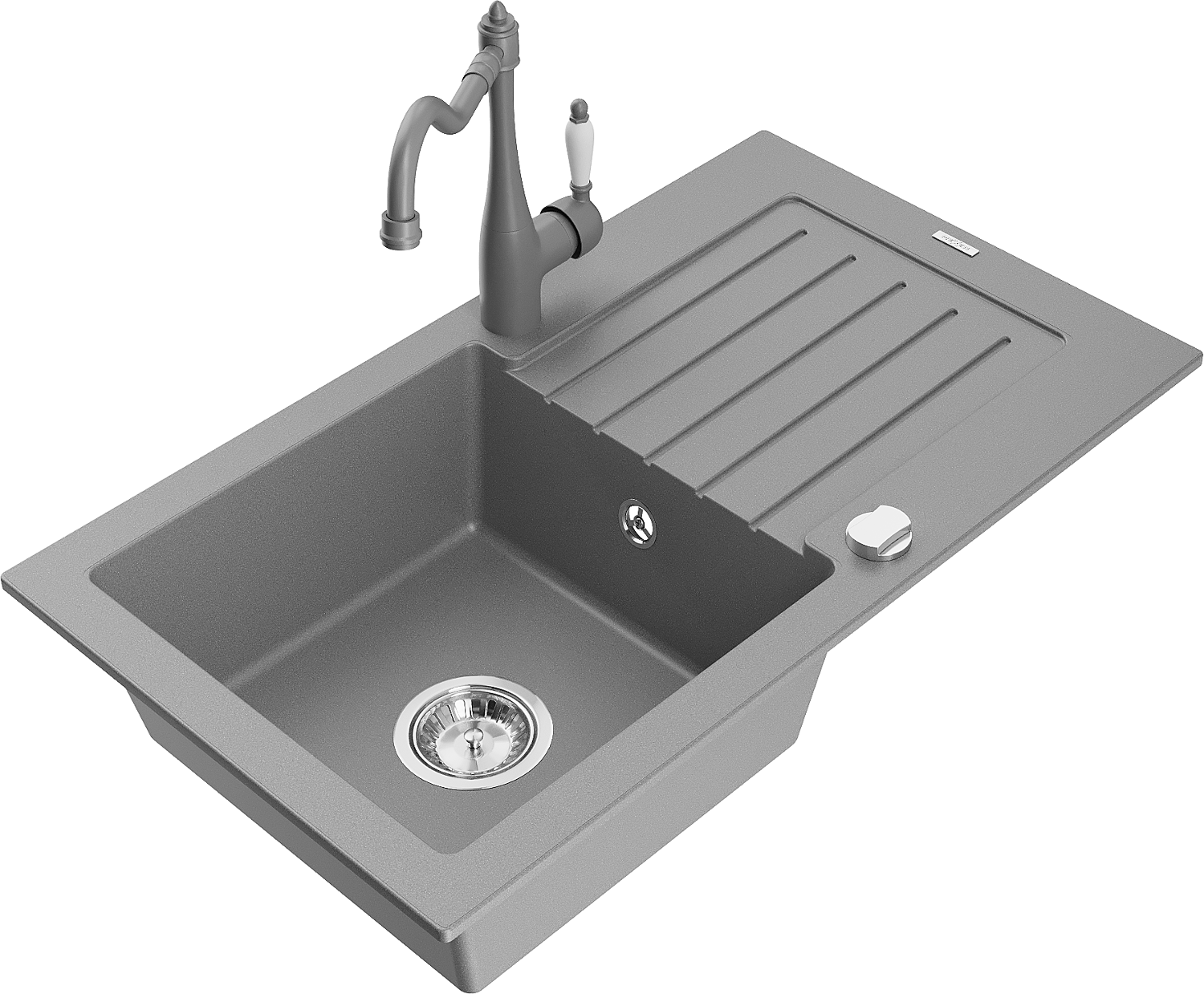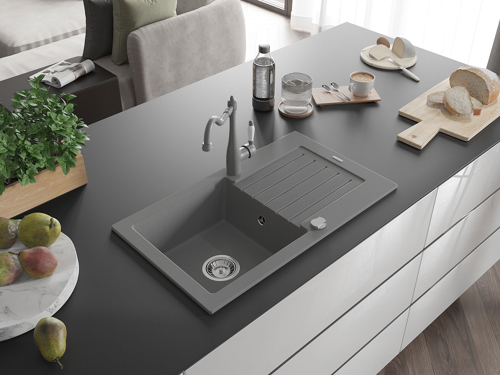 A mosogató magas minőségű gránitból készült. Elegáns, de mindenekelőtt praktikus kiegészítője minden konyhának, függetlenül annak stílusától. A gránit magas minősége és tartóssága hosszú távú használatot biztosít.
