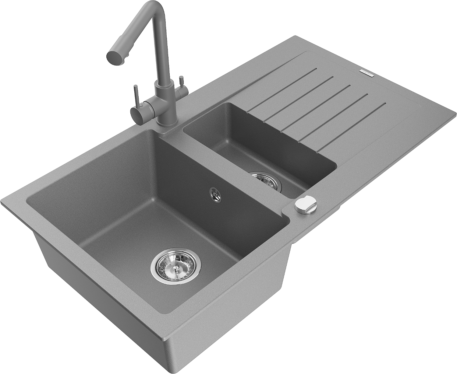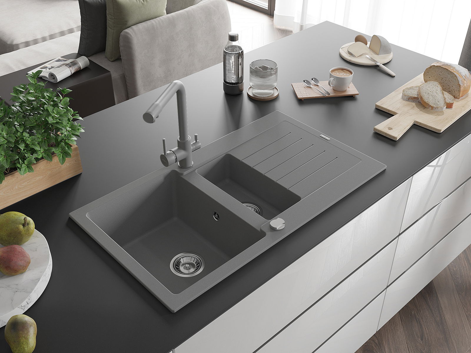 Mexen Matias 1,5-medencés gránit mosogató csepegtetővel és Duero konyhai csapteleppel, szürke - 6502-71-671600-71