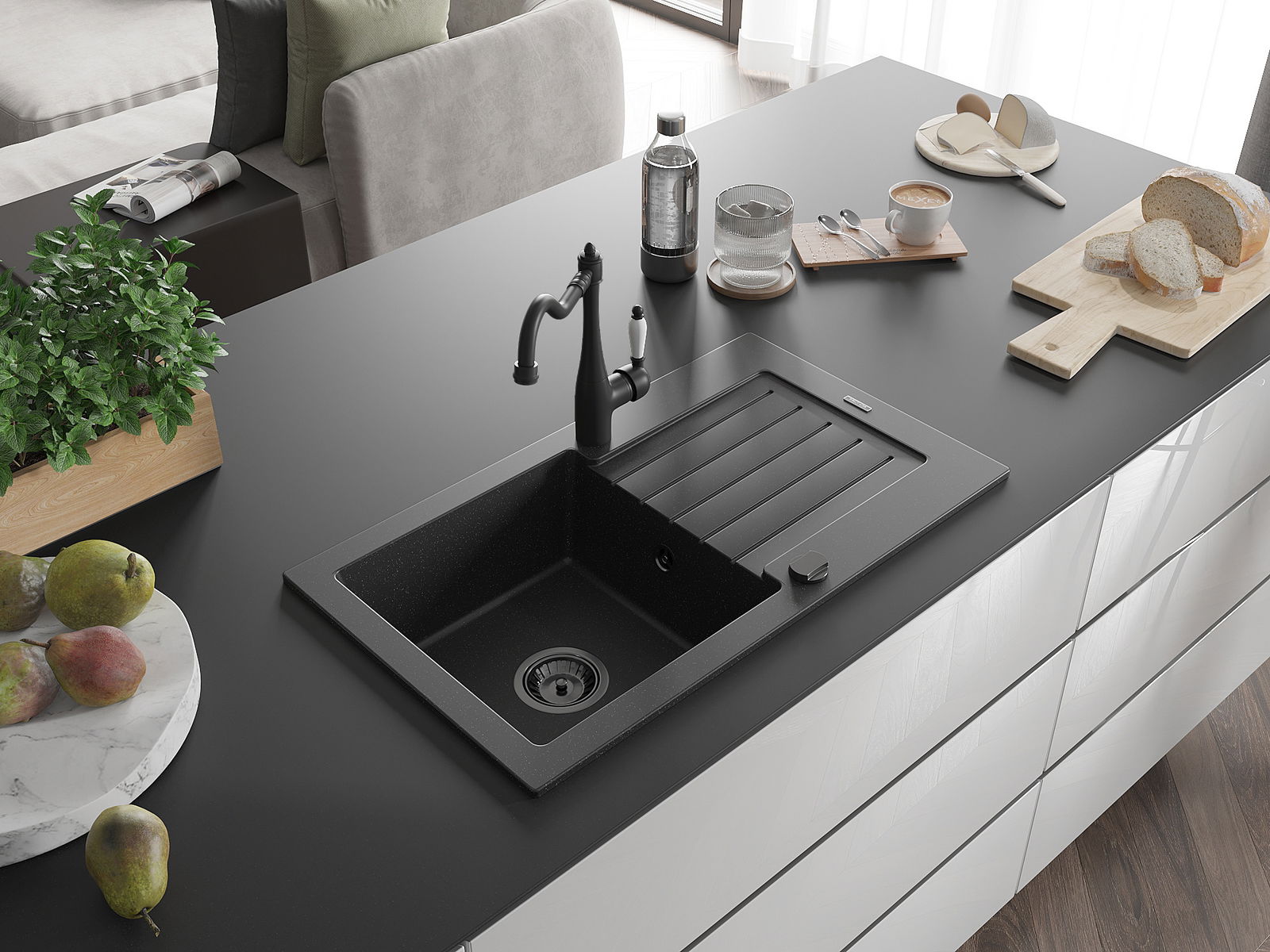 A mosogató magas minőségű gránitból készült. Elegáns, de mindenekelőtt praktikus kiegészítője minden konyhának, függetlenül annak stílusától. A gránit magas minősége és tartóssága hosszú távú használatot biztosít.