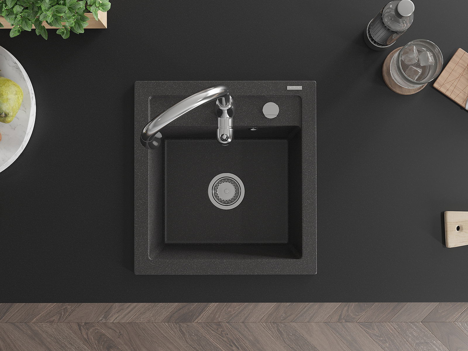 A mosogató kiváló minőségű gránitból készül. Ez egy elegáns és mindenekelőtt minden konyhához praktikus kiegészítés, stílusától függetlenül. A kiváló minőségű és a gránit tartósság biztosítja a sok éves használatát.