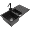Mexen Matias 1,5 kamrás gránit mosogató, csepegtetővel és Rita konyhai csapteleppel, szürke - 6502-71-670300-71
