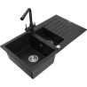 Mexen Matias gránit mosogató 1,5 tálcás csepegtetővel és Duero konyhai csapteleppel, fekete/arany metál - 6502-75-671600-70