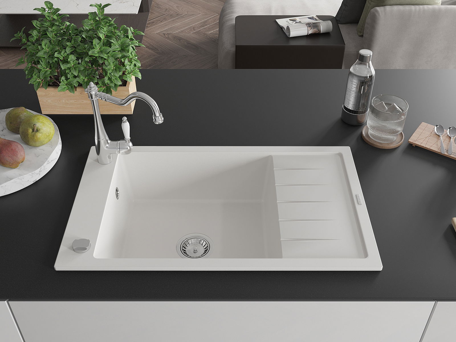 A mosogató felülete ellenáll a foltoknak és a elszíneződésnek, amelynek köszönhetően könnyű megtisztítani és hosszú ideig megtartja színét. Esztétikai és gyakorlatilag kiegészítve minden konyhát.