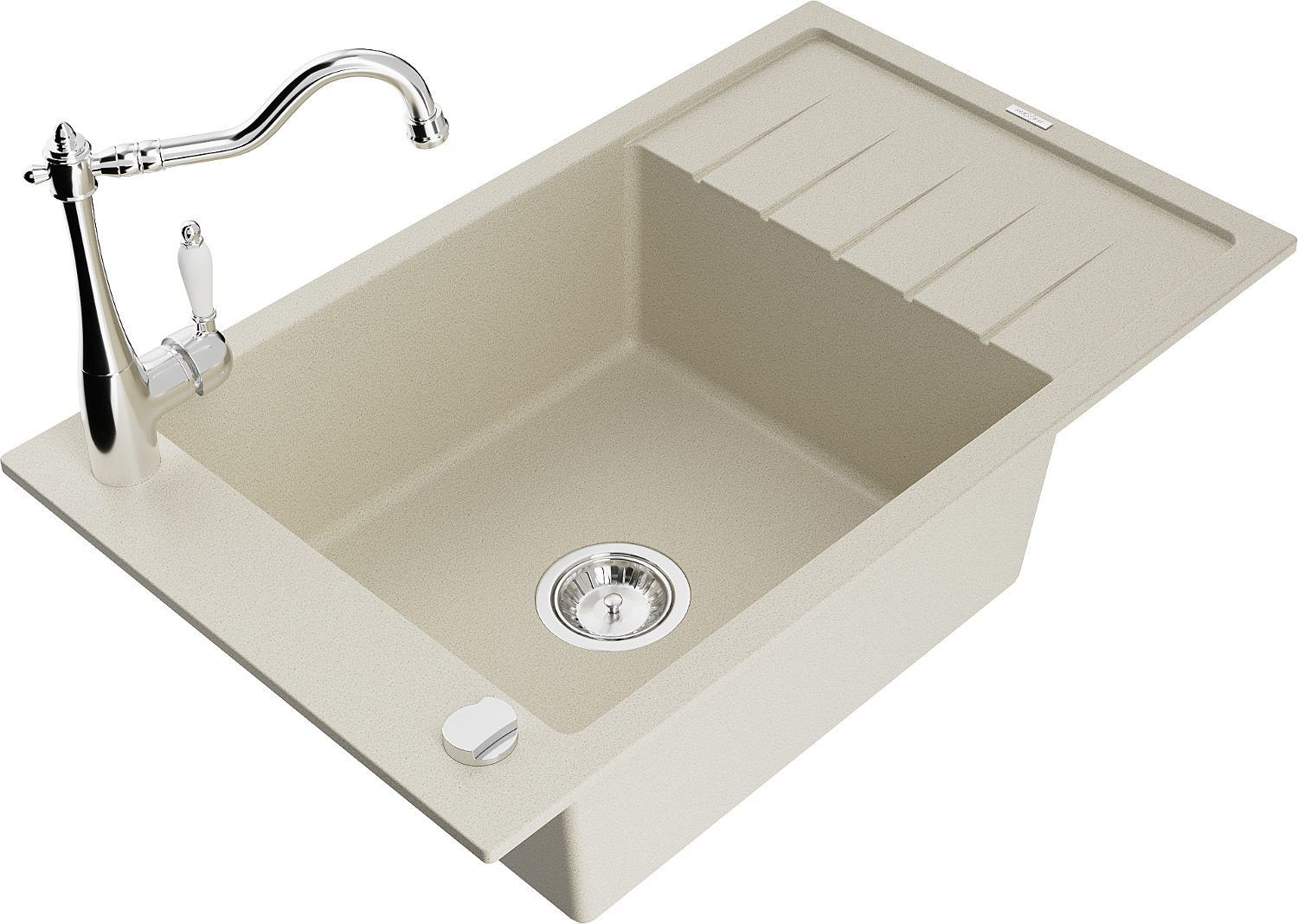 Mexen Elias egymedencés gránit mosogató csepegtetővel és Carla konyhai csapteleppel, bézs - 6511-69-670700-00