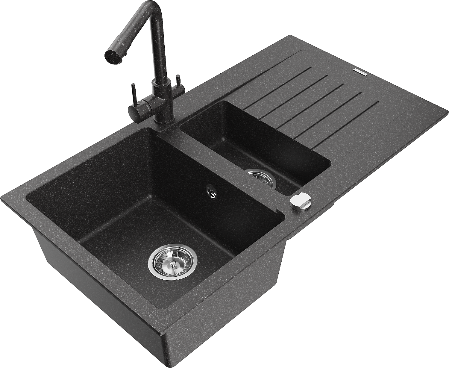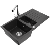 Mexen Matias 1,5 medencés gránit mosogató csepegtetővel és Duero konyhai csapteleppel, fekete pöttyös - 6502-76-671600-76