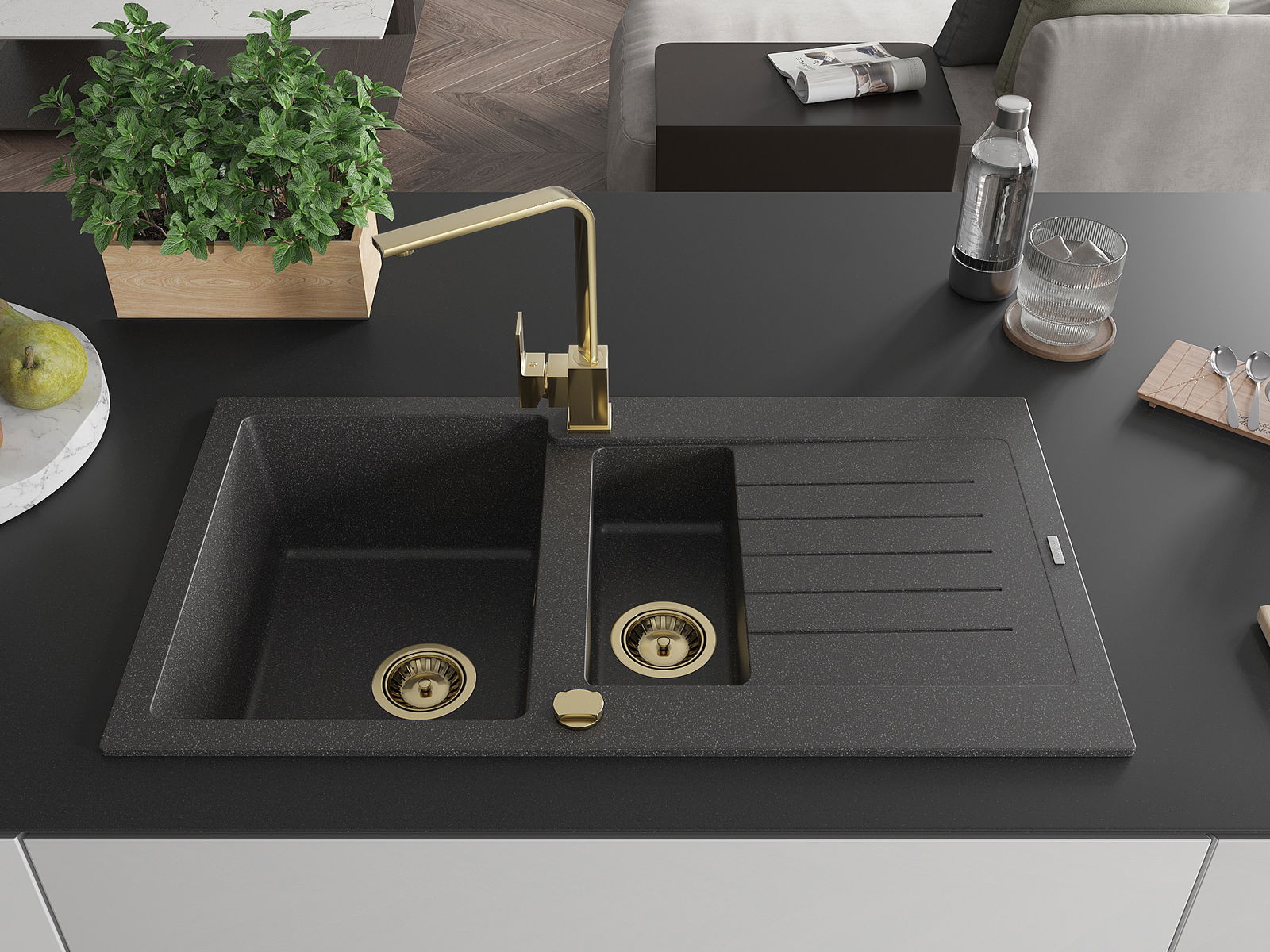 A mosogató kiváló minőségű gránitból készül. Ez egy elegáns és mindenekelőtt minden konyhához praktikus kiegészítés, stílusától függetlenül. A kiváló minőségű és a gránit tartósság biztosítja a sok éves használatát.