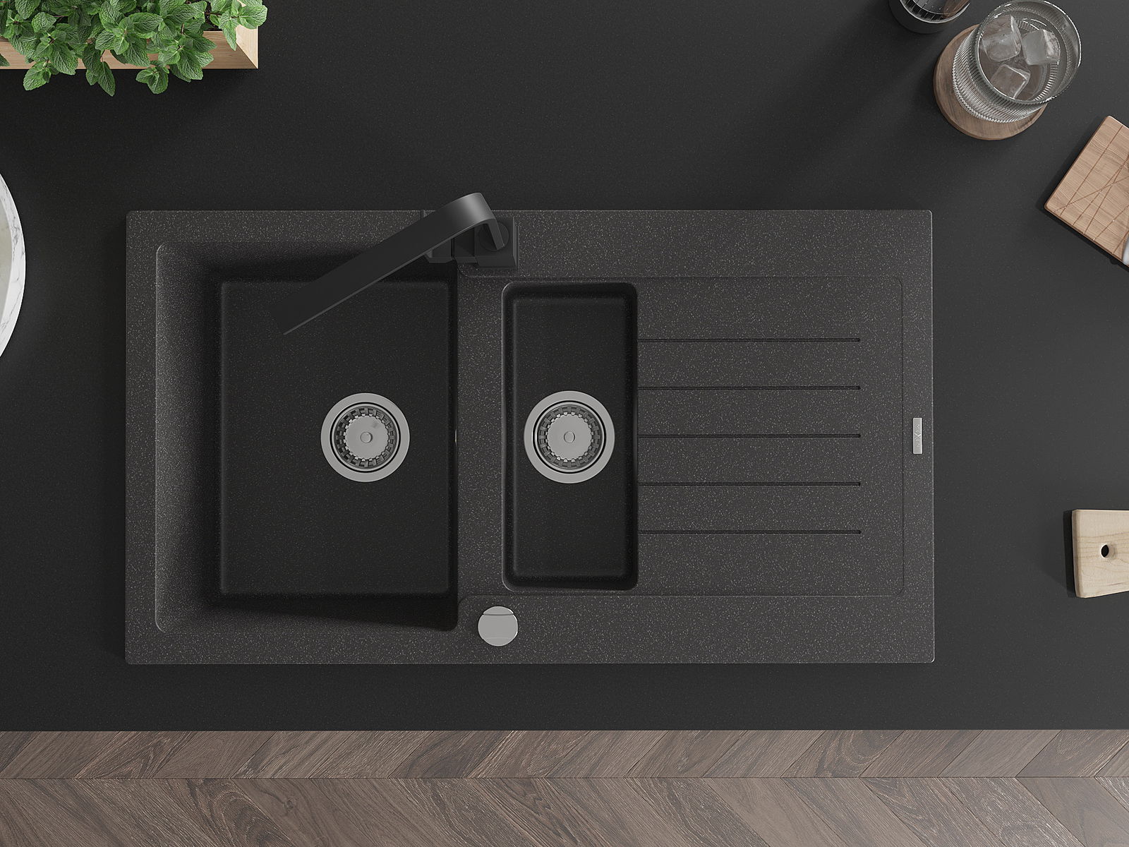 A mosogató kiváló minőségű gránitból készül. Ez egy elegáns és mindenekelőtt minden konyhához praktikus kiegészítés, stílusától függetlenül. A kiváló minőségű és a gránit tartósság biztosítja a sok éves használatát.