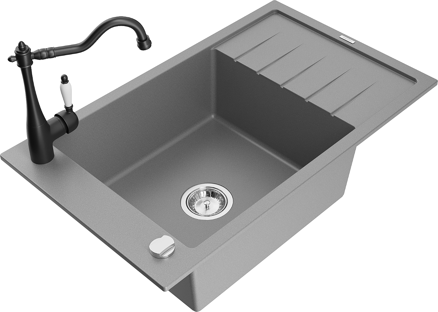 A mosogató kiváló minőségű gránitból készül. Ez egy elegáns és mindenekelőtt minden konyhához praktikus kiegészítés, stílusától függetlenül. A kiváló minőségű és a gránit tartósság biztosítja a sok éves használatát.