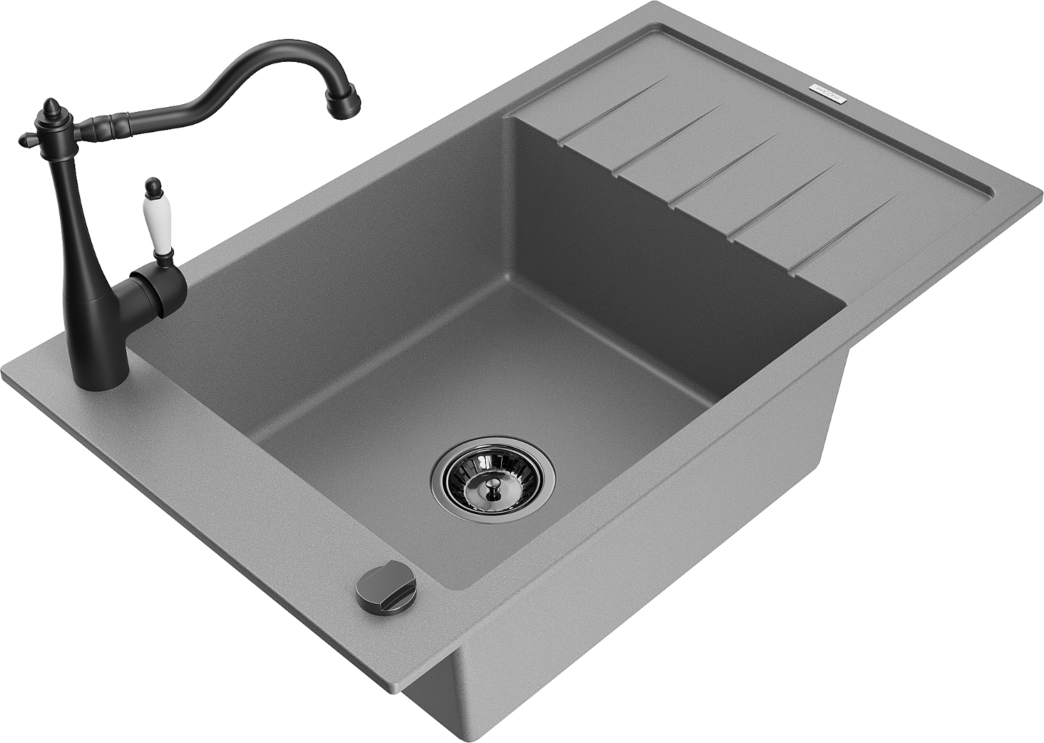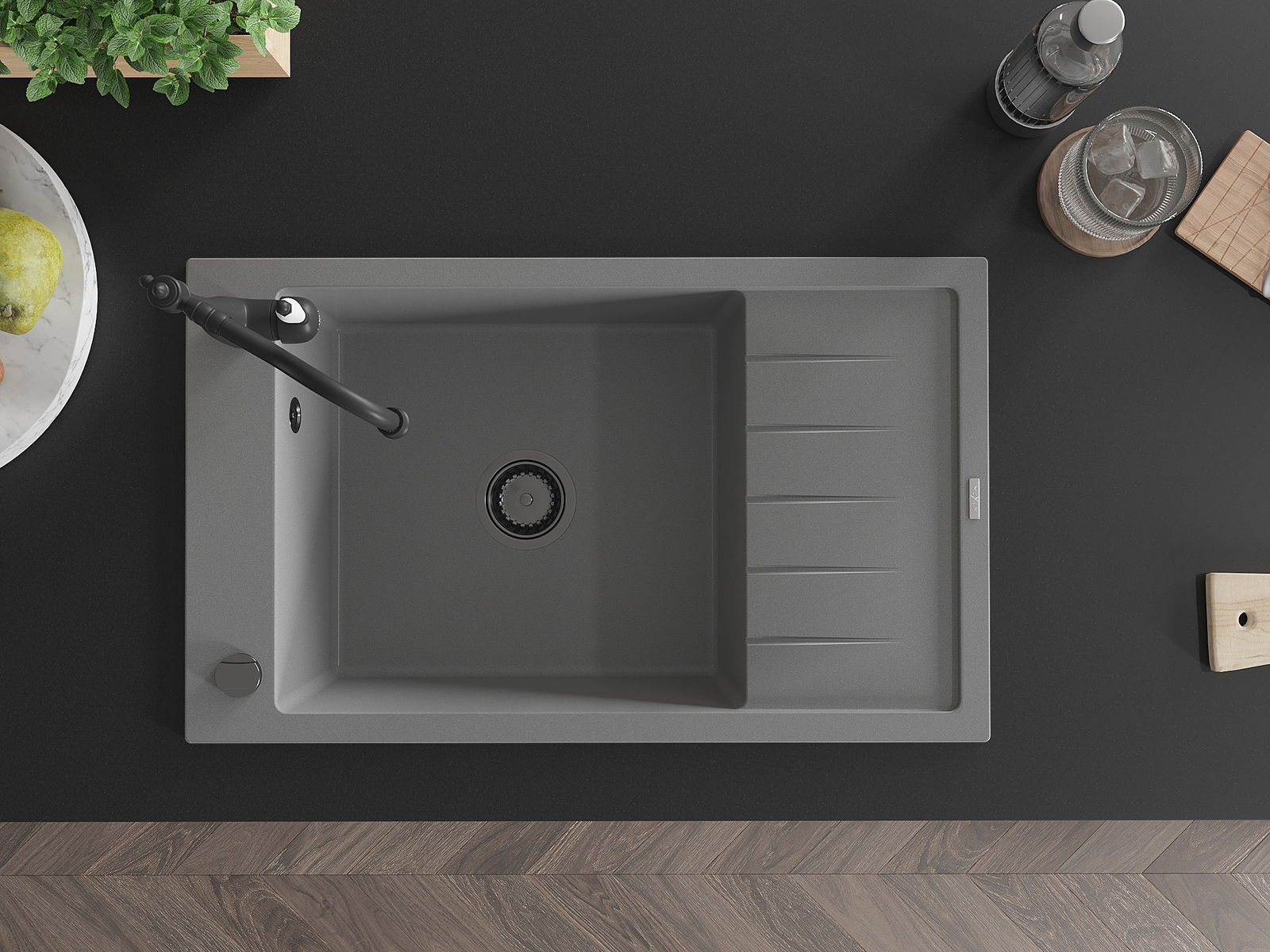 Mexen Elias 1-medencés gránit mosogató csepegtetővel és Carla konyhai csapteleppel, szürke - 6511-71-670700-70-B