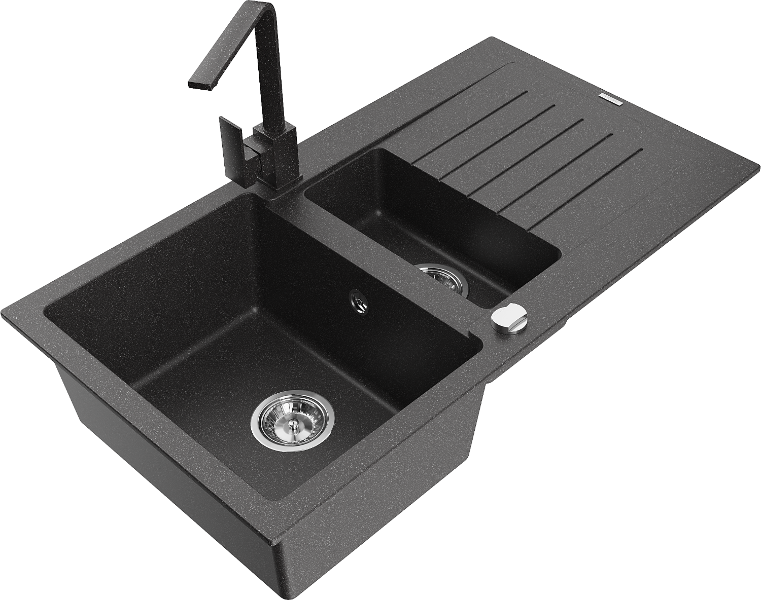 Mexen Matias 1,5-medencés gránit mosogatótálca csepegtetővel és Rita konyhai csapteleppel, fekete pöttyös - 6502-76-670300-76