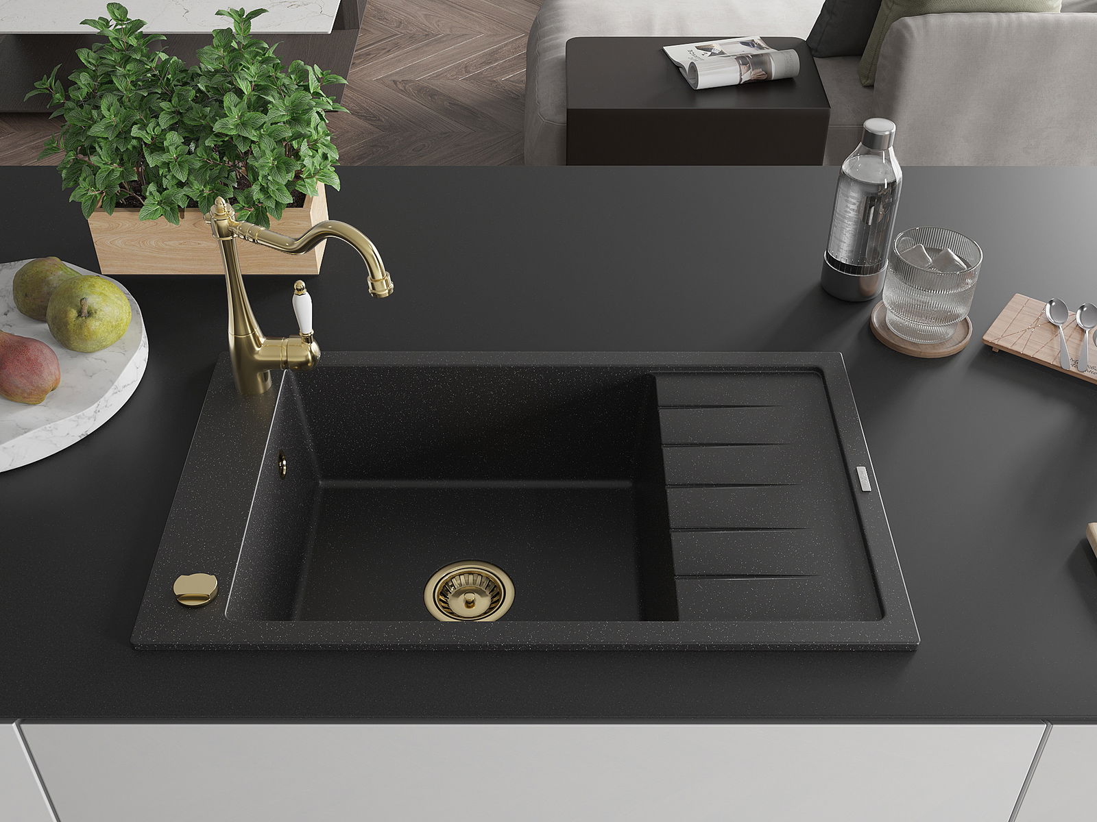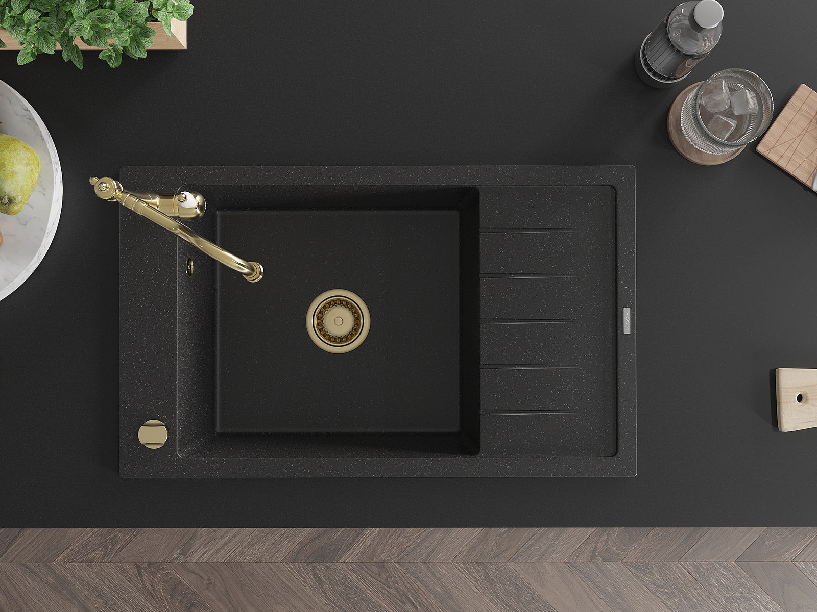 A mosogató kiváló minőségű gránitból készül. Ez egy elegáns és mindenekelőtt minden konyhához praktikus kiegészítés, stílusától függetlenül. A kiváló minőségű és a gránit tartósság biztosítja a sok éves használatát.