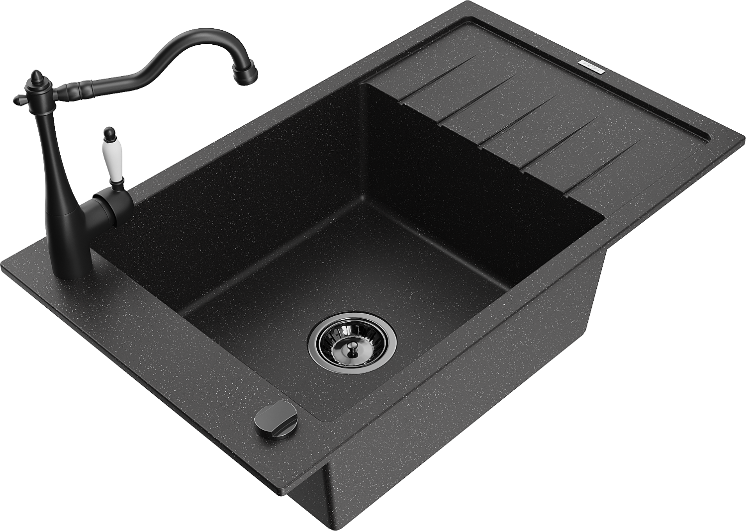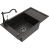 Mexen Elias egykamrás gránit mosogató csepptálcával és Carla konyhai csapteleppel, fekete/ezüst metál - 6511-73-670700-70-B