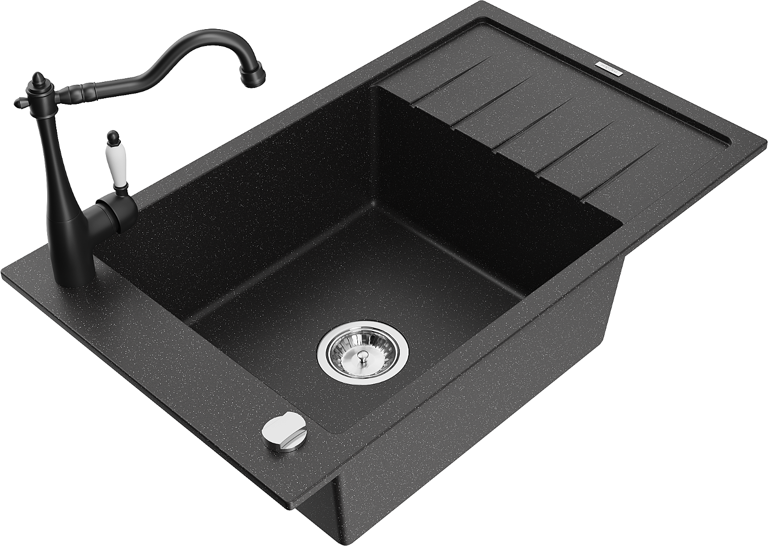 Mexen Elias egymedencés gránit mosogató csepptálcával és Carla konyhai csapteleppel, fekete/ezüst metál - 6511-73-670700-70