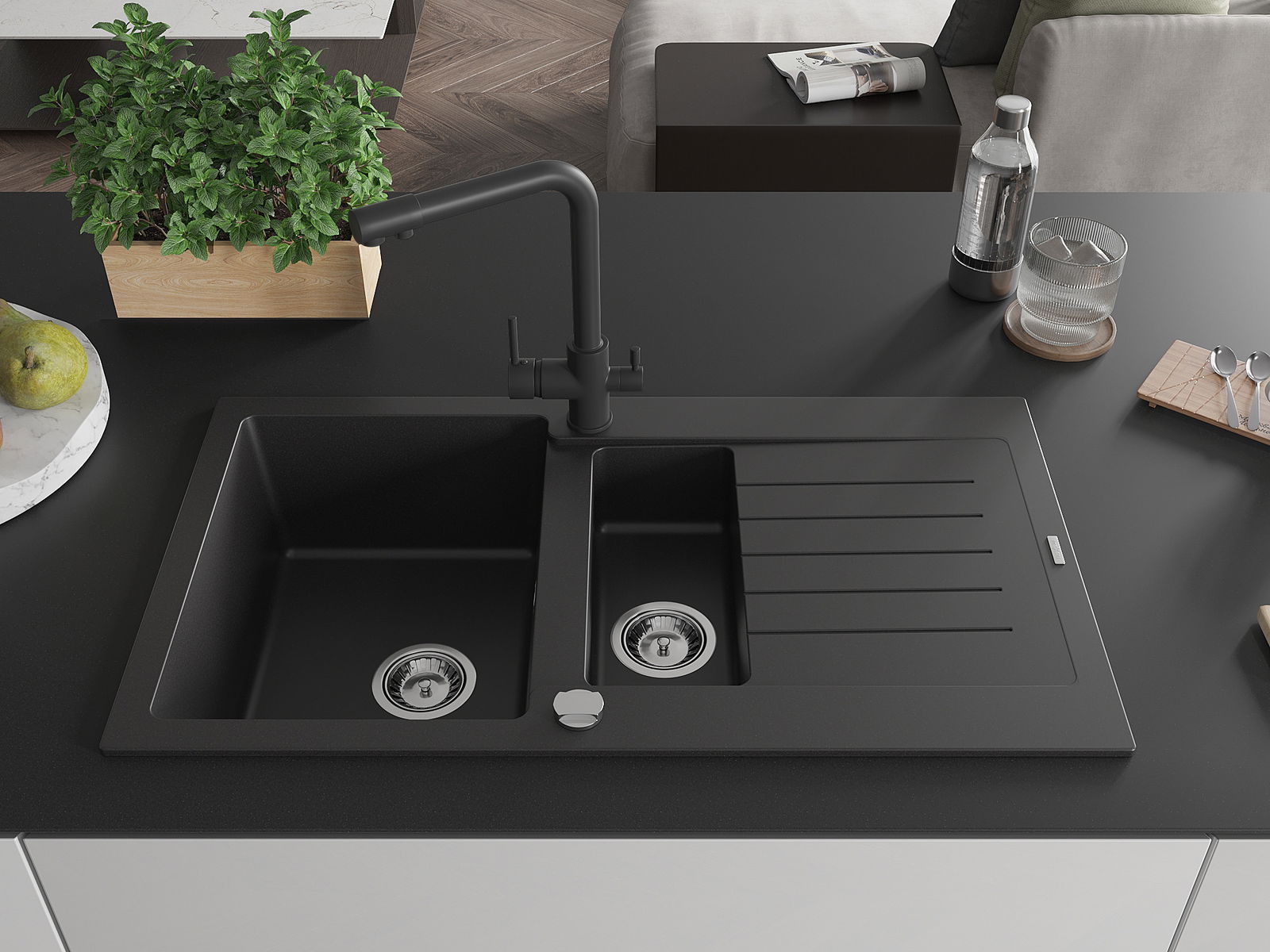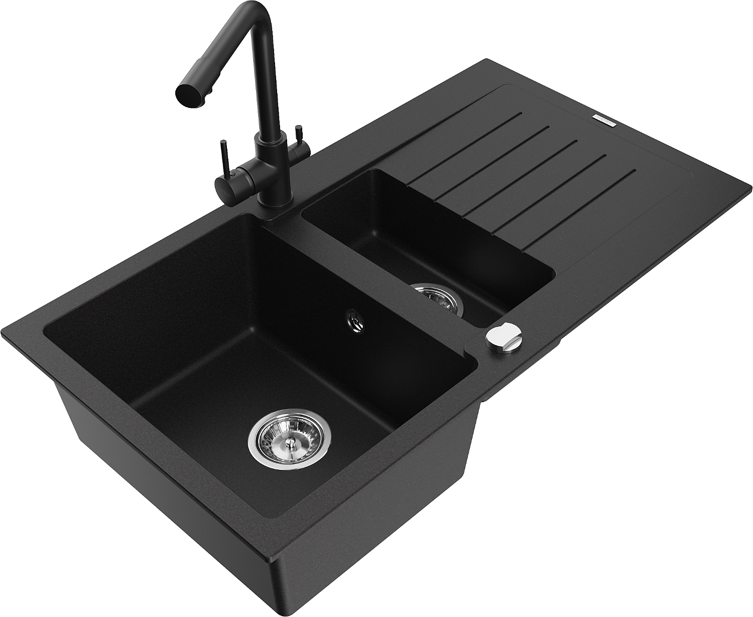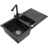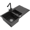 Mexen Matias 1,5 rekeszes gránit mosogató csepegtetővel és Duero konyhai csappal, fekete - 6502-77-671600-70