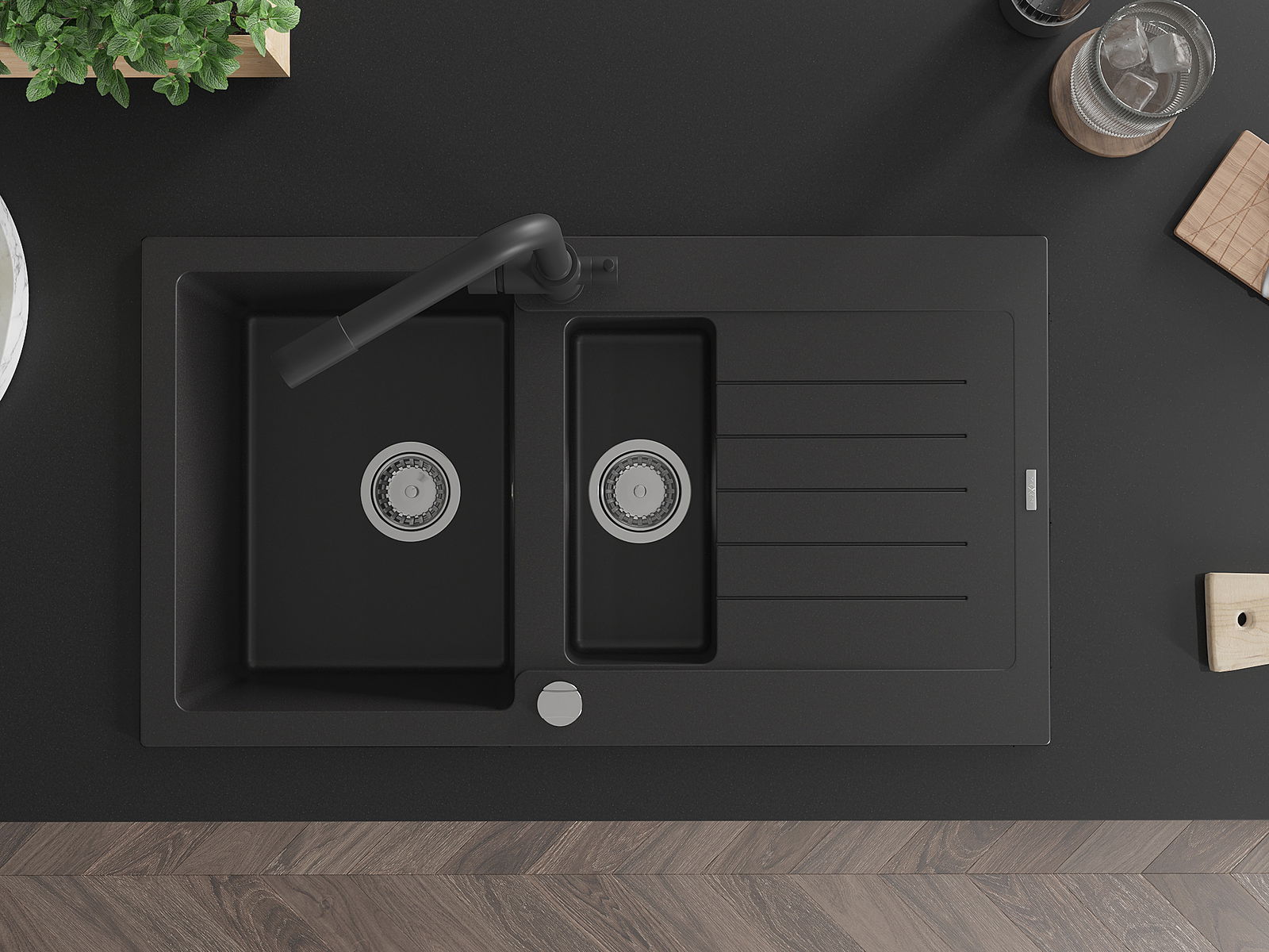 A mosogató kiváló minőségű gránitból készül. Ez egy elegáns és mindenekelőtt minden konyhához praktikus kiegészítés, stílusától függetlenül. A kiváló minőségű és a gránit tartósság biztosítja a sok éves használatát.