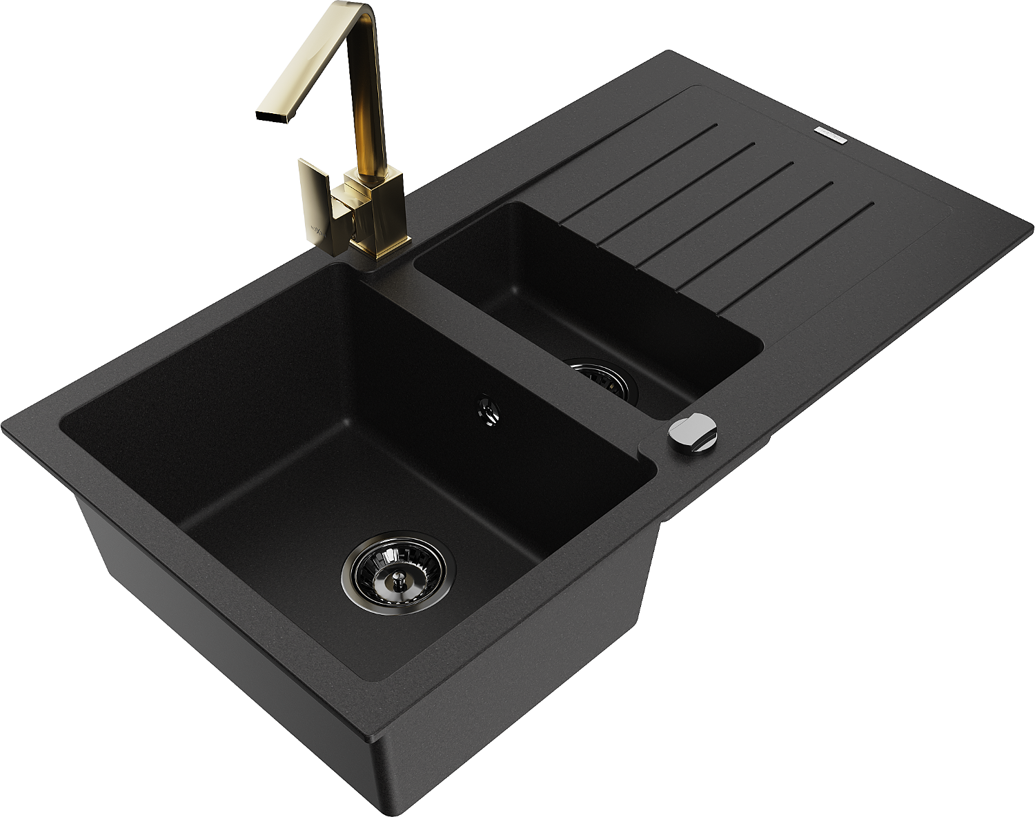 Mexen Matias 1,5-ös rekeszes gránit mosogató csepegtetővel és Rita konyhai csapteleppel, fekete - 6502-77-670300-50-B