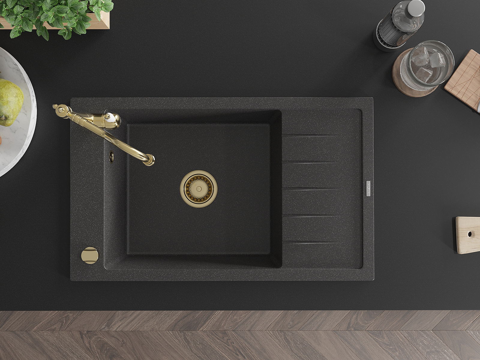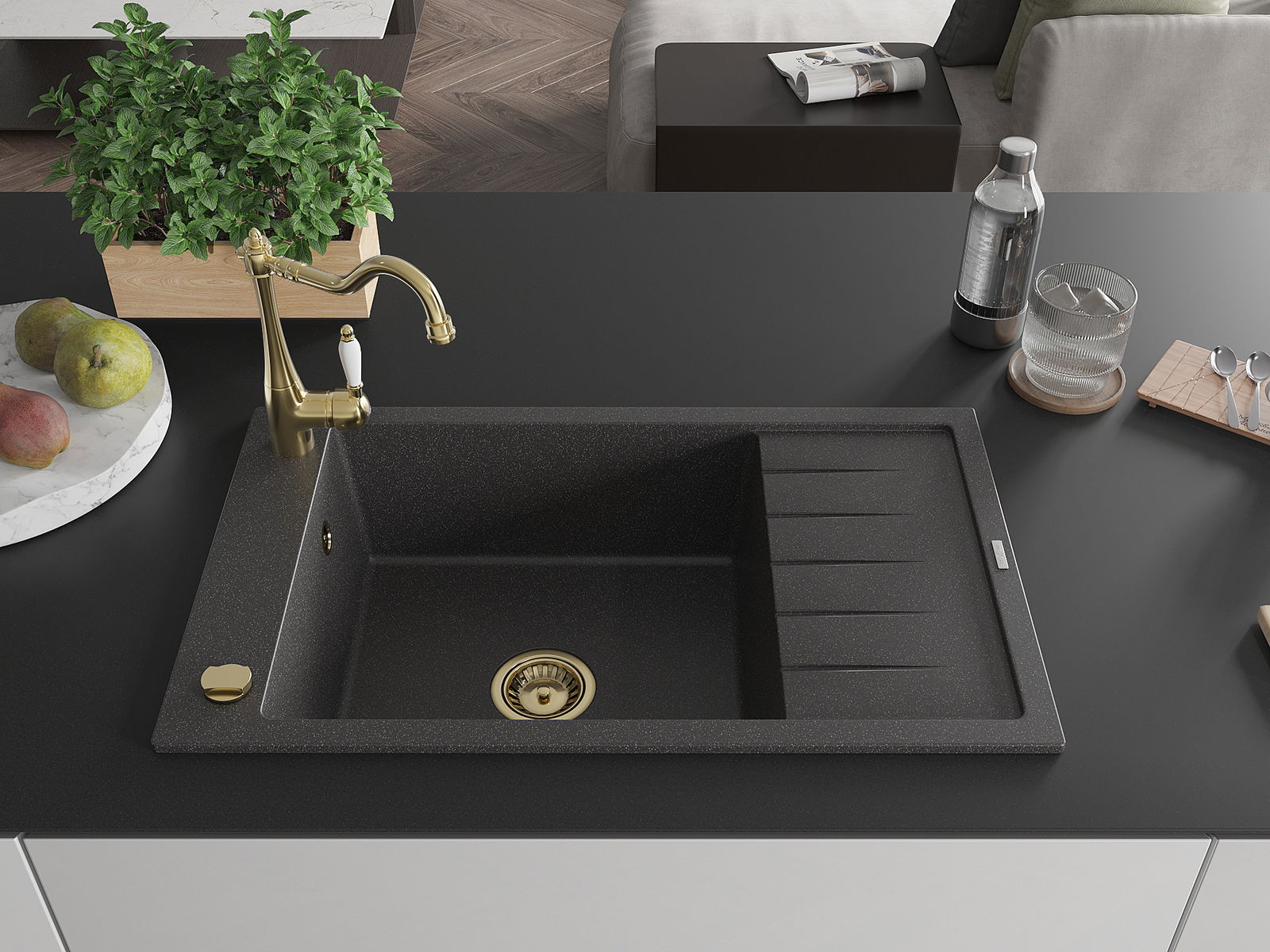 A mosogató kiváló minőségű gránitból készül. Ez egy elegáns és mindenekelőtt minden konyhához praktikus kiegészítés, stílusától függetlenül. A kiváló minőségű és a gránit tartósság biztosítja a sok éves használatát.